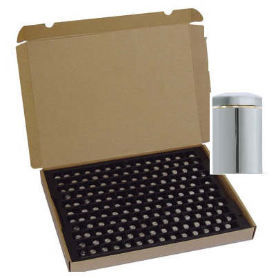 Material: Messing, Hülse vernickelt, Dekokappe Messing silbermatt veredelt.