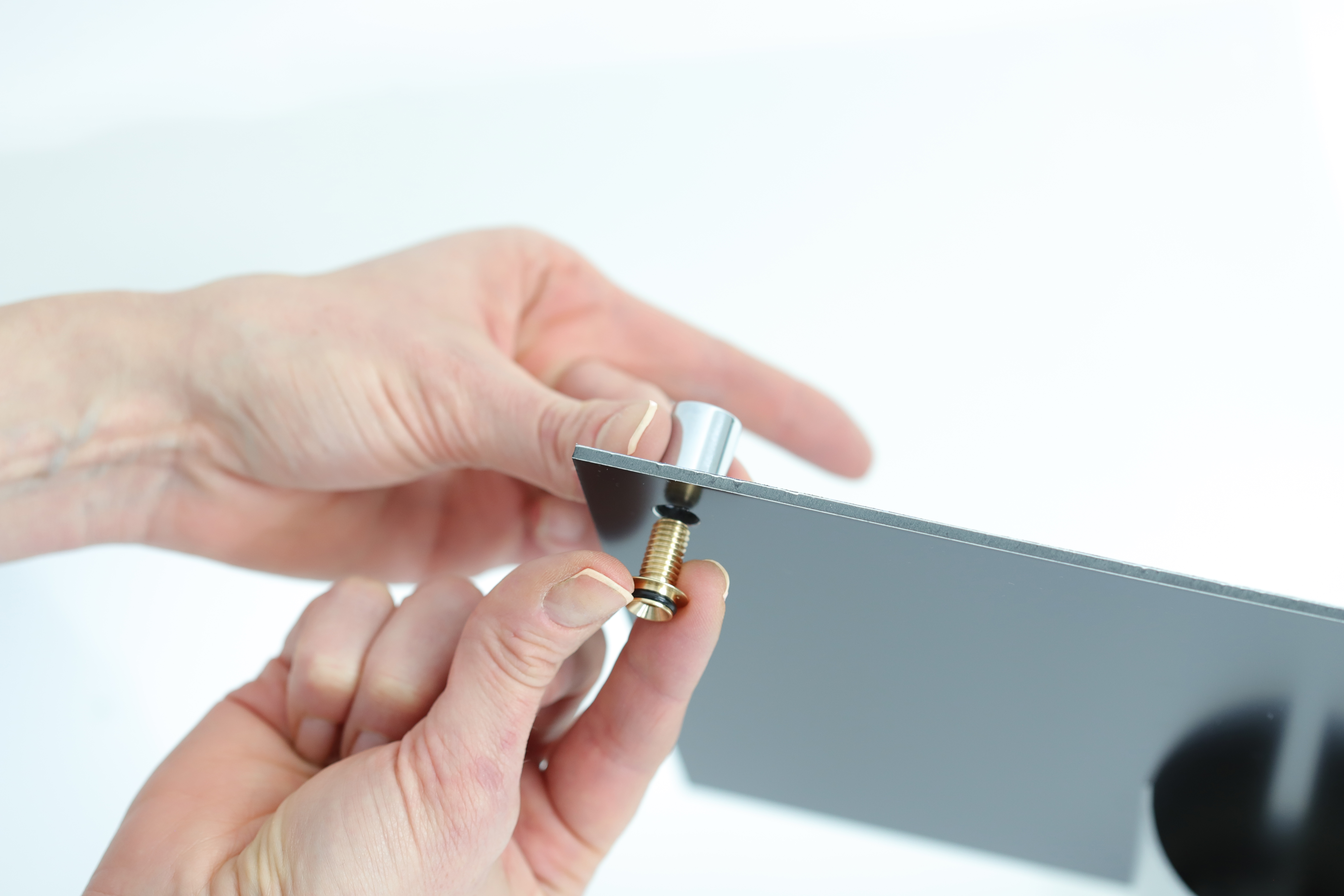 Ökonomisch: Paneele zwischen Hülse und Wandhalter vormontieren.