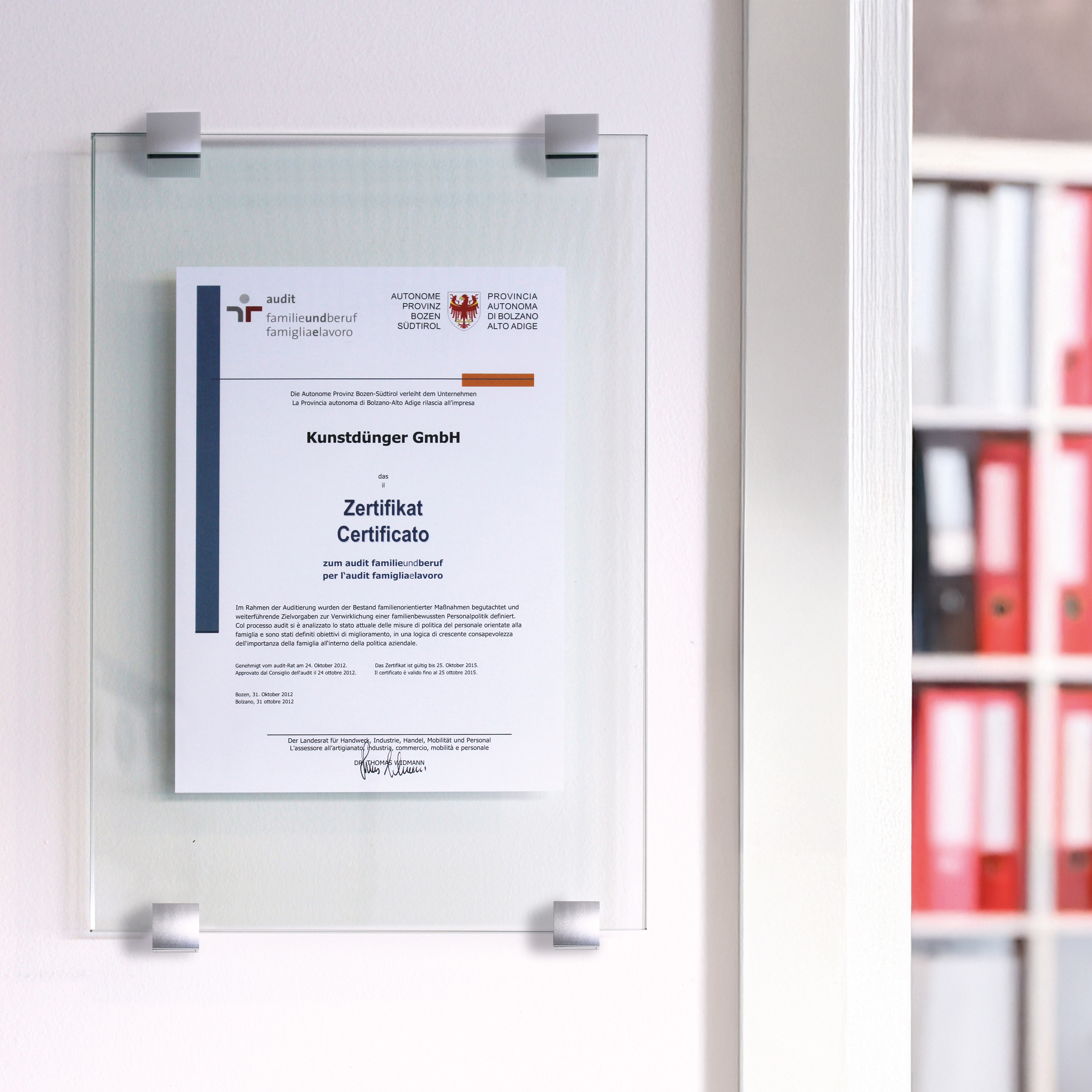 Unser wandmontierter Schilderhalter Clamper klemmt Plattendrucke, Firmen-, Tür- und Glasschilder stufenlos und sicher ein. Auch Sandwich-Systeme zur Beschilderung mit Papier-Einleger können einfach mit 2 Glasschildern gestaltet werden.