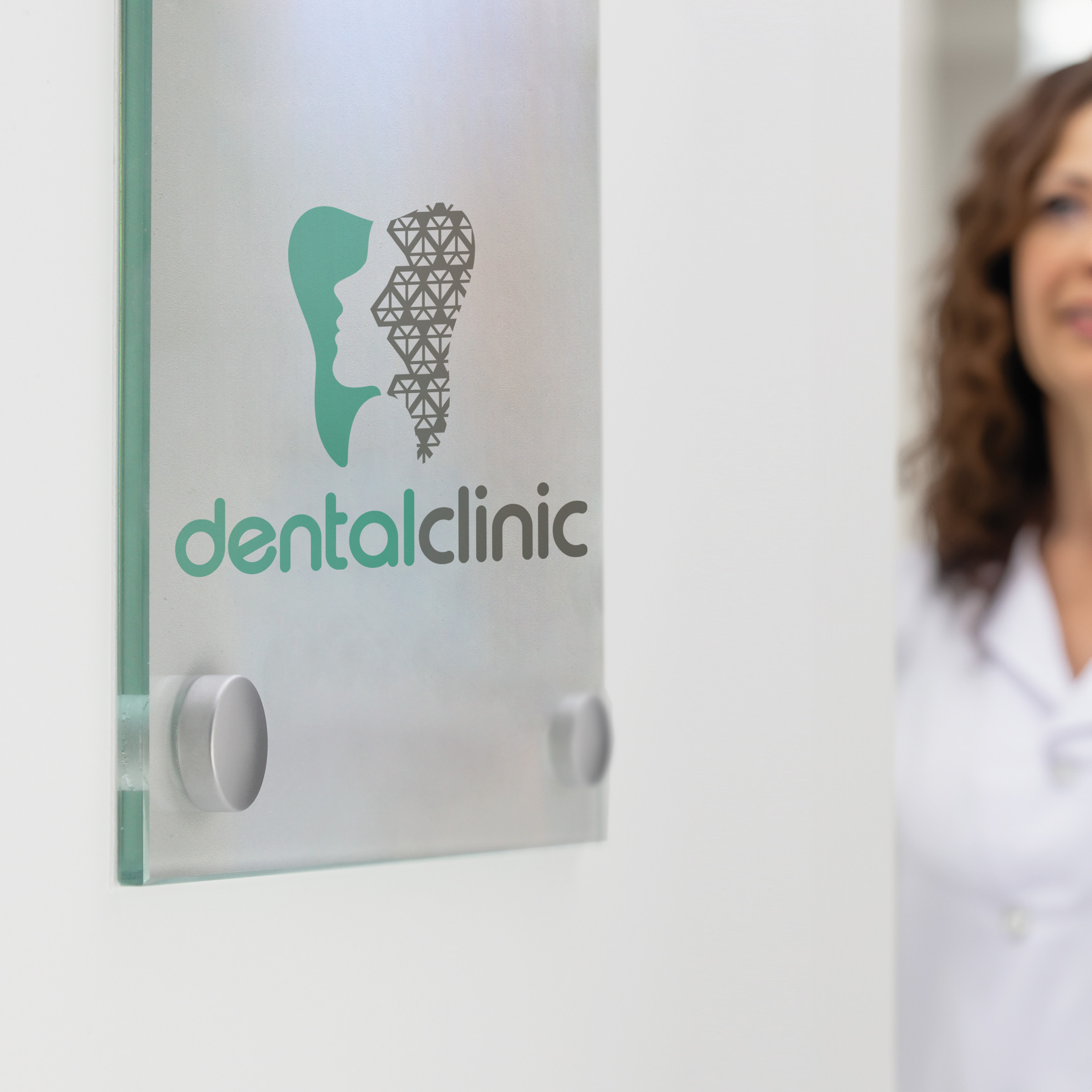 Wandbefestigung ohne Abstand für Schilder und bedruckte Paneele mit silber matter Dekokappe zum Aufklicken.