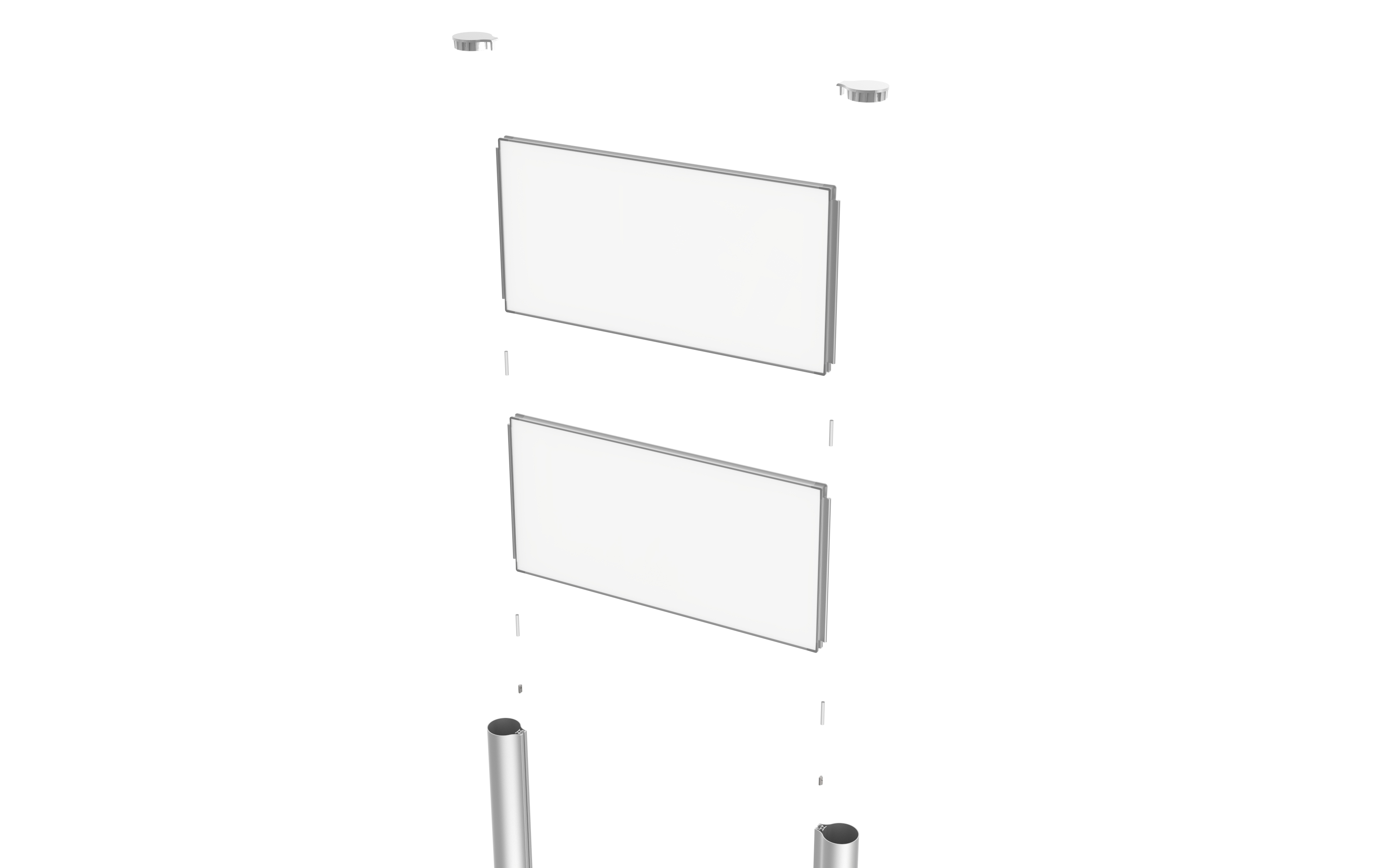 Doppelseitige Tafeln mit silber eloxiertem Aluminium Profilrahmen, matt