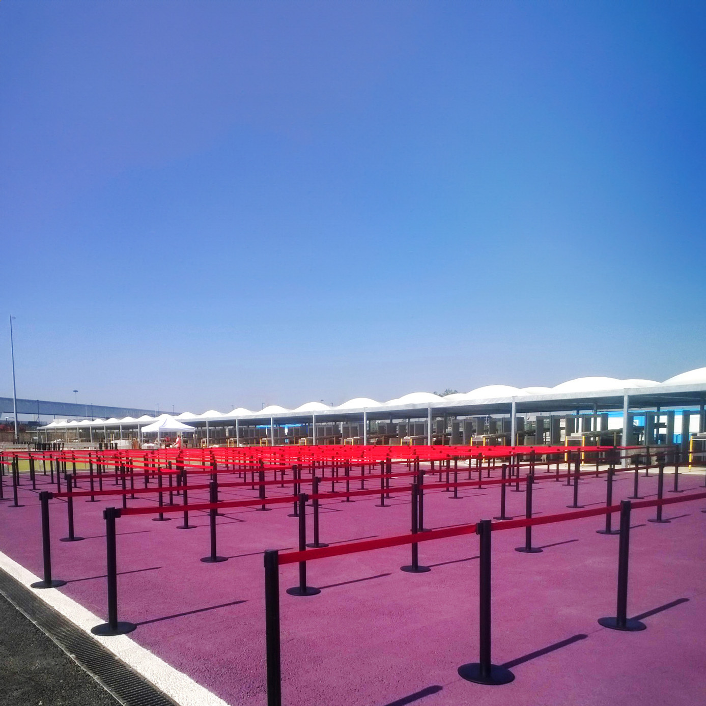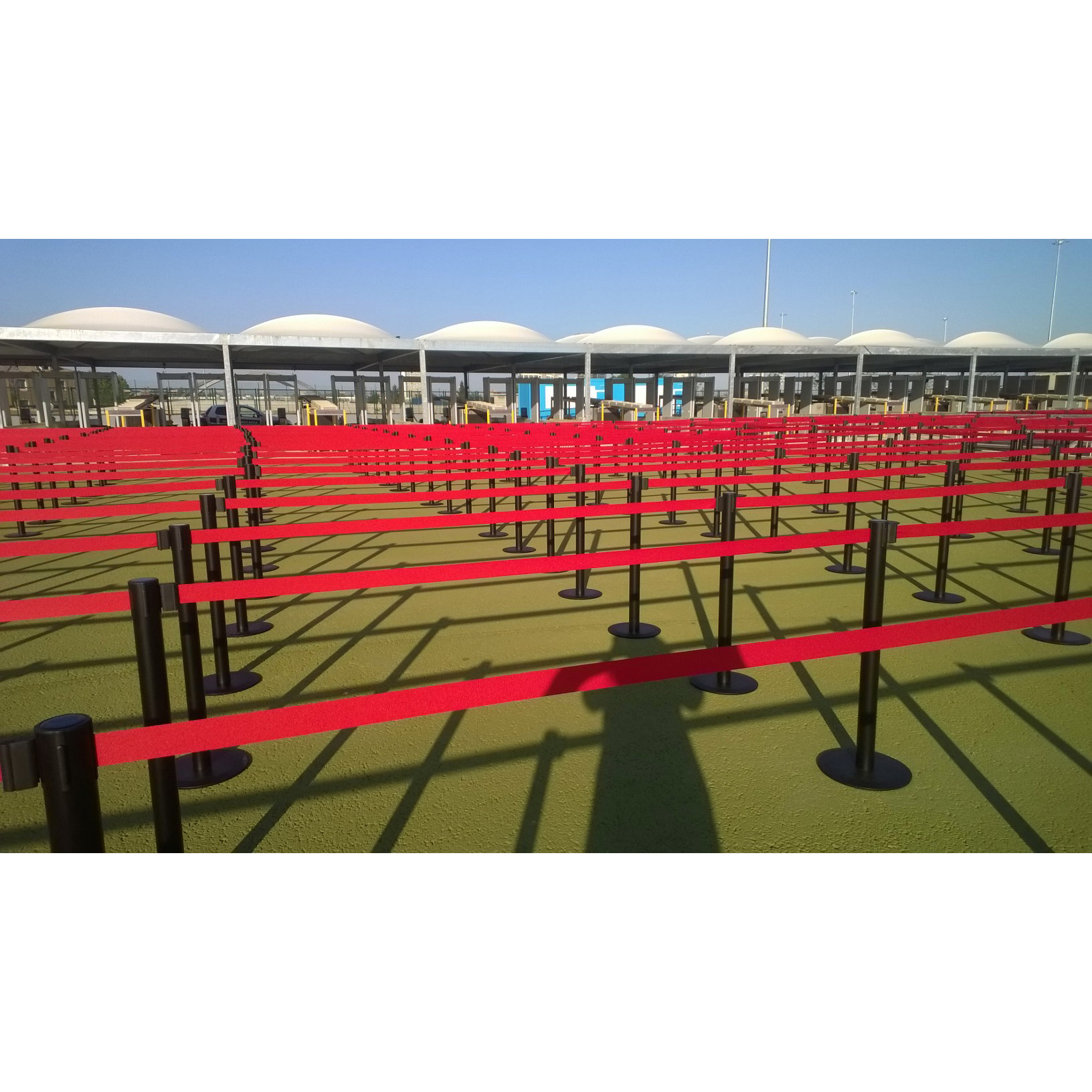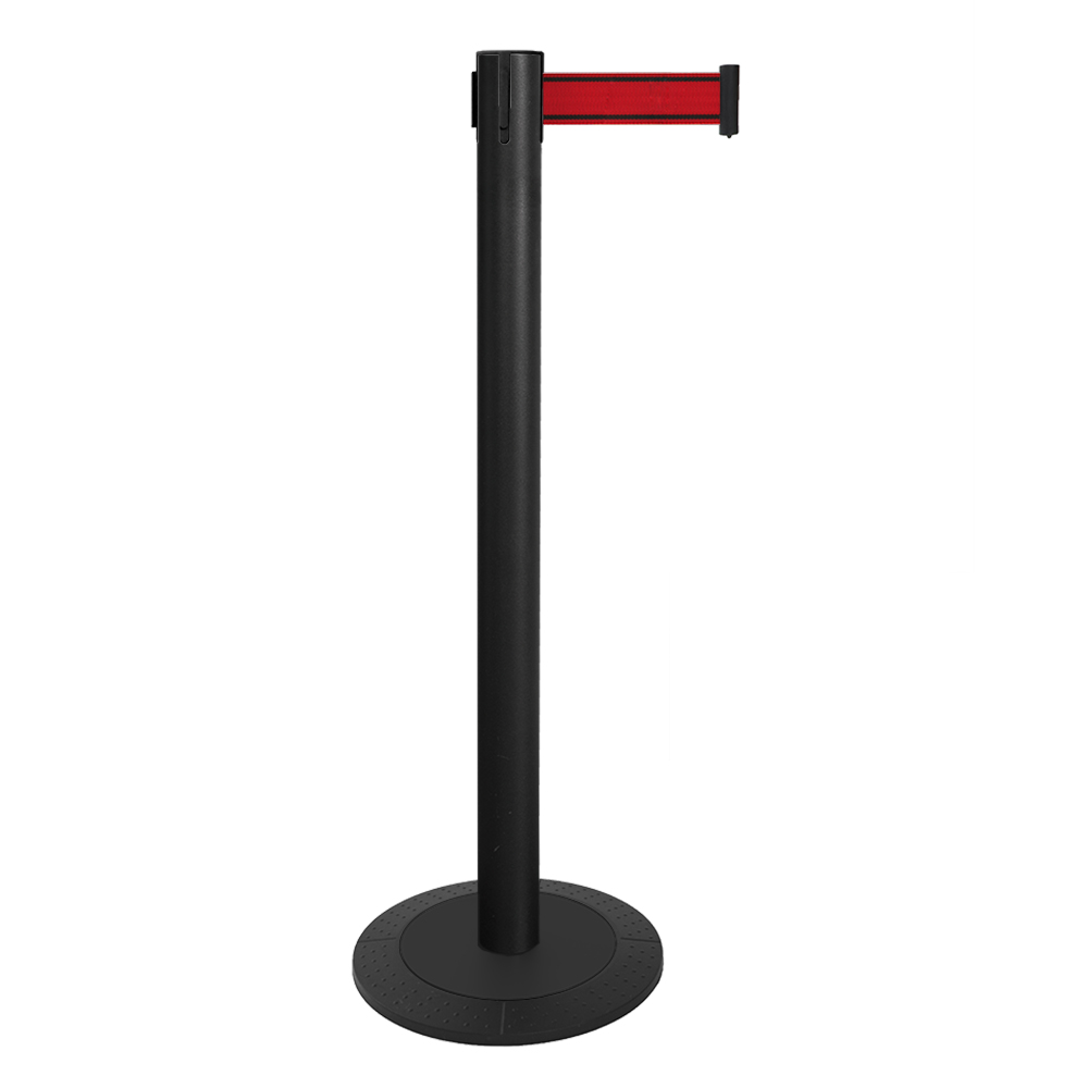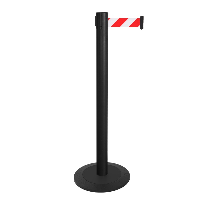 Stabil, sauber, langlebig und sicher: Absperrsäulen in schwarz matt mit Gurt in verschiedenen Farben - oder ohne Gurt als Gegenstück für das Band eines zweiten Pfostens.