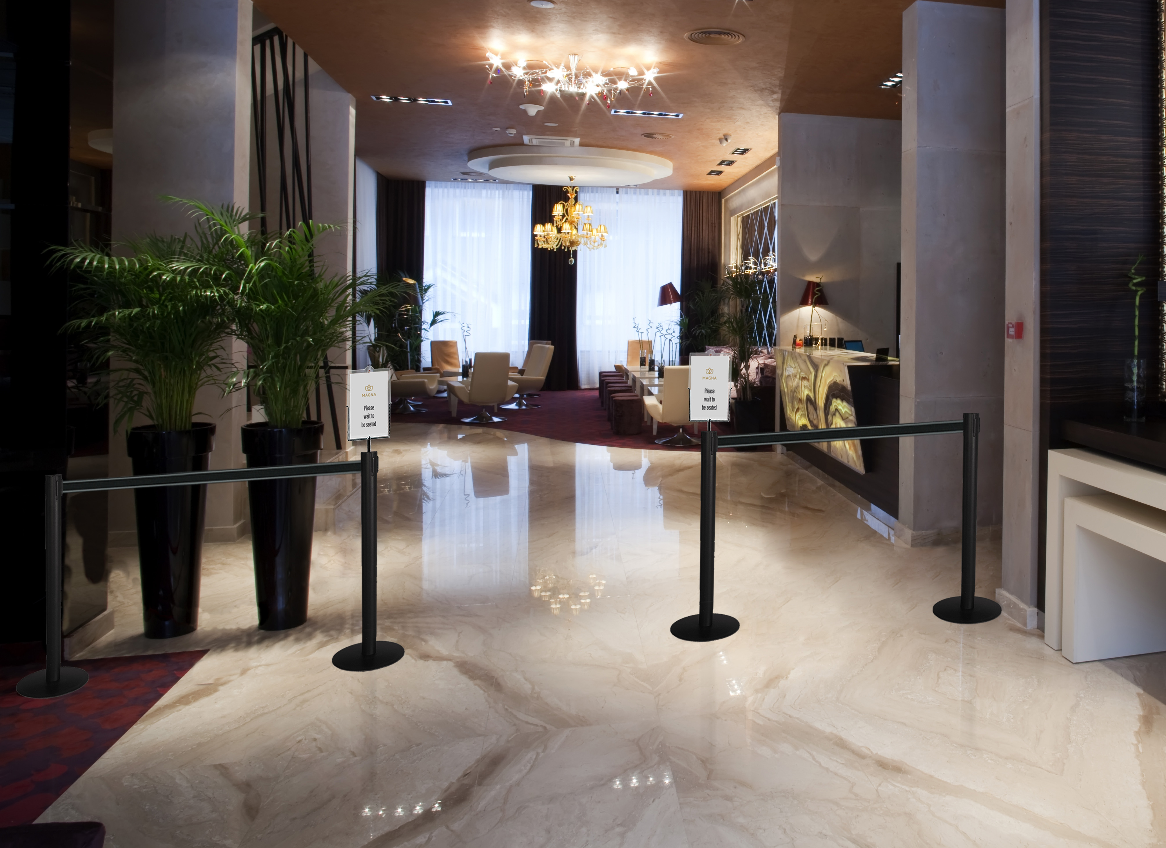Begrenzungsständer aus eloxiertem Aluminium in matt schwarz: pflegeleicht, Fingerabdrücke und Wassertropfen bleiben unsichtbar.