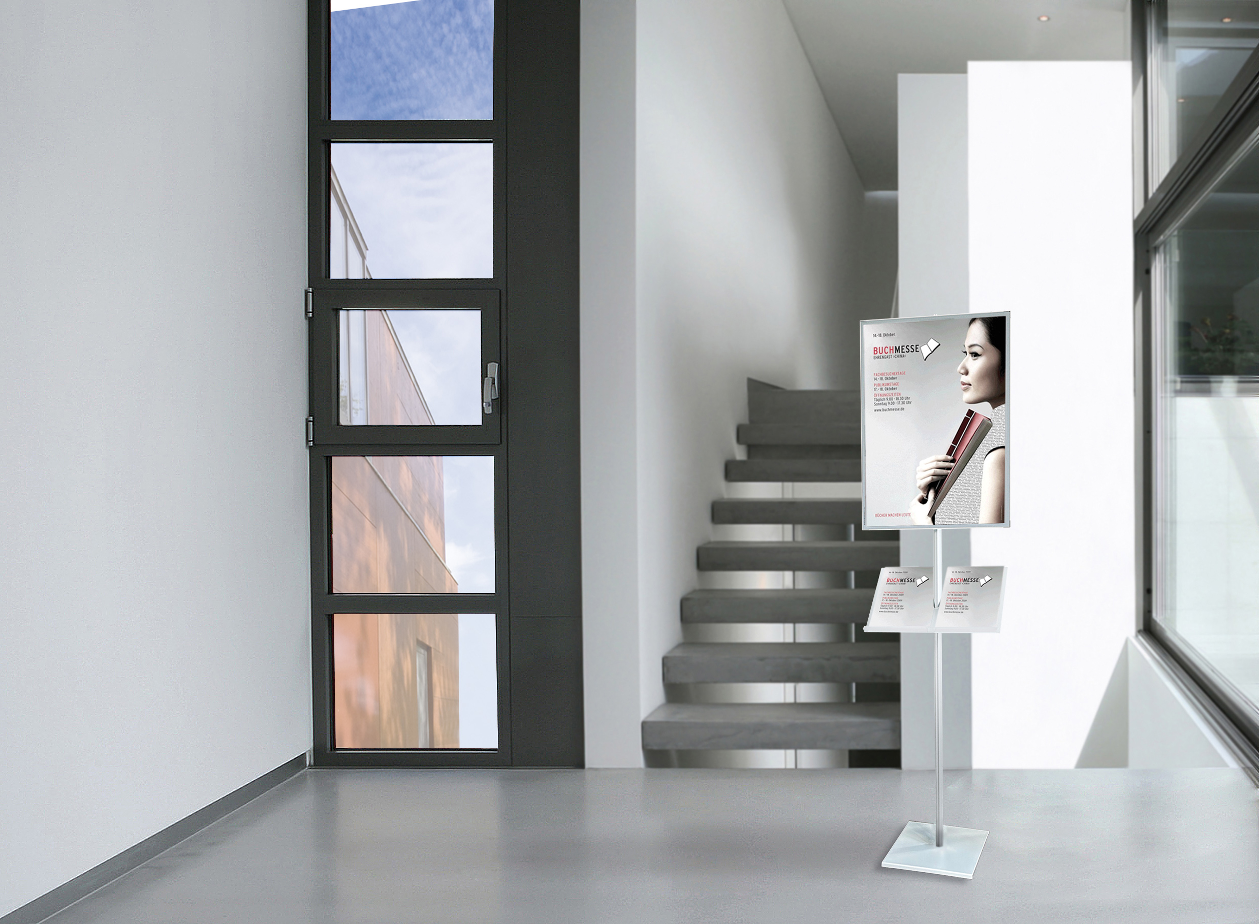 Maginfo Slim kombiniert den Schnellwechselrahmen Magnedoor Slim und eine stabile Soistes-Struktur zum freistehenden Bodendisplay. Der Informationswechsel ist schnell und unkompliziert: einfach die flexible Coverfolie aus nicht reflektierendem Polycarbonat abnehmen. Optional kann ihr Maginfo Slim mit einer Ablage für 2 A4 aus satiniertem Acrylglas perfekt ergänzt werden.