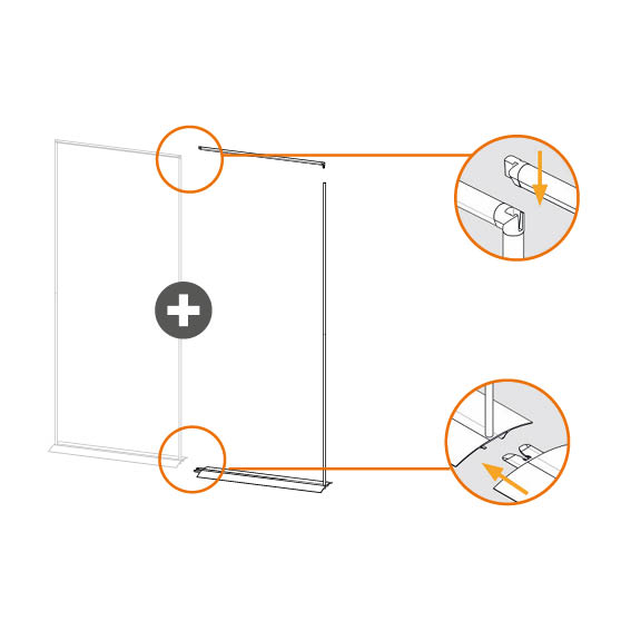 Anbau-Modul für Bodendisplay Banner Up: einfach C- Modul dank der Verbinder anschliessen. Steckverbindungen ermöglichen einen schnellen werkzeugfreien Auf- und Abbau. Baue endlose Werbewände für Stoffdruck mit Hohlsaum. Bannertausch einfach und intuititv. Stabil gebaut, dabei leicht zu transportieren.