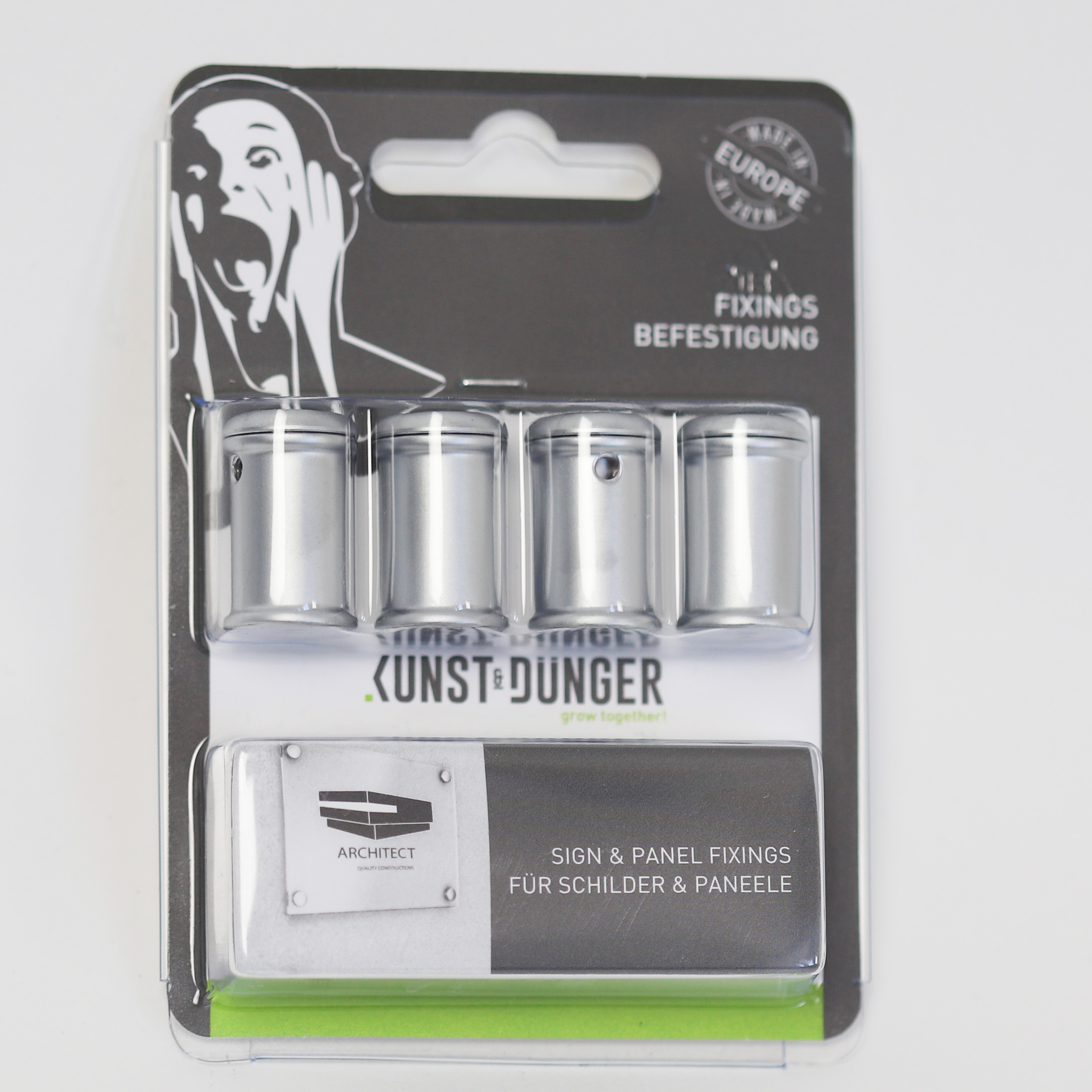 Halter an der Wand befestigen, Paneel auflegen, Kopf durch das Paneel in den Halter stecken und mit seitlicher Madenschraube im Halter gegen Manipulation sichern.