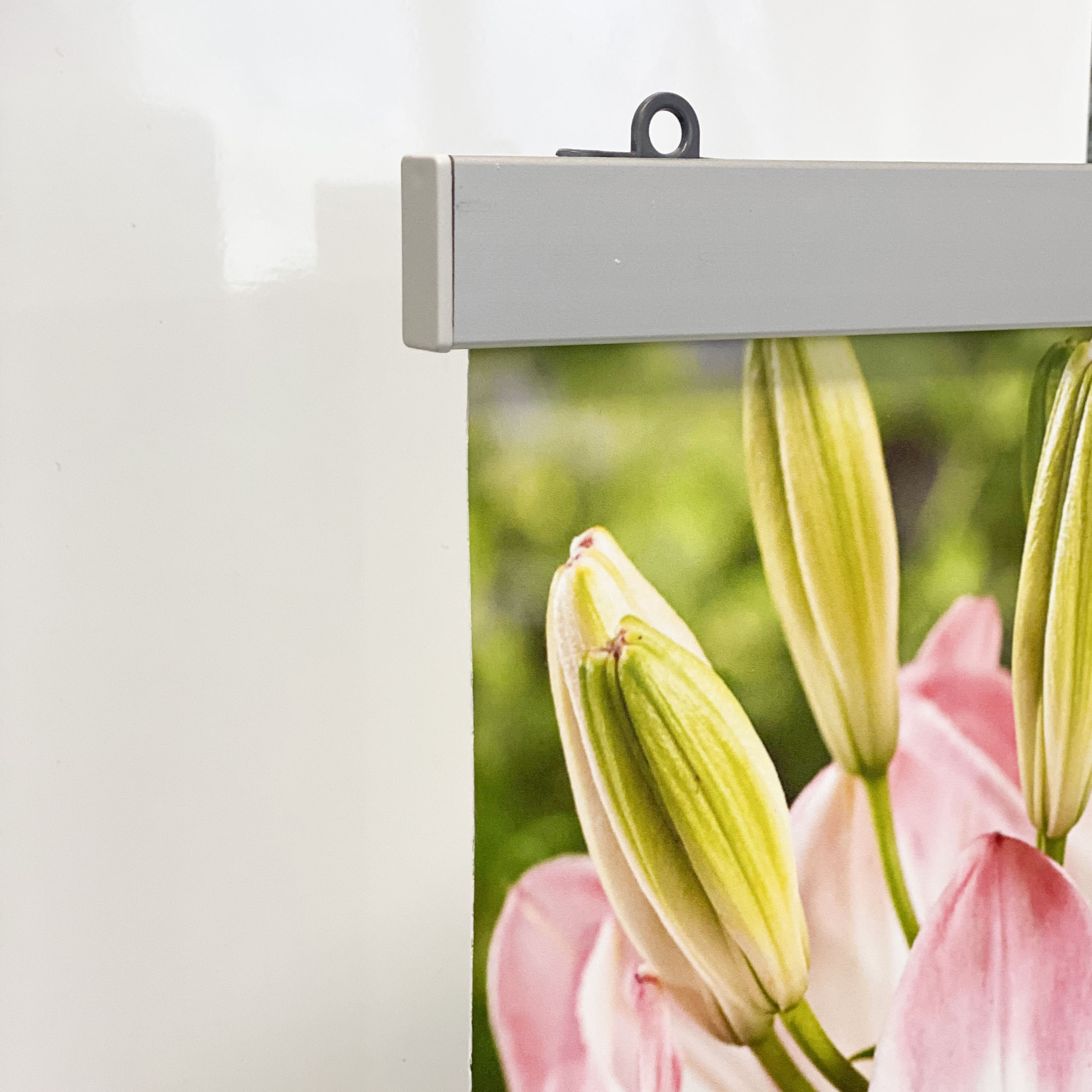 Ein Klick und schon ist Ihr Banner passgerecht aufgehängt. MyMago Hang Up ist ein elegantes silbermatt eloxiertes Aluminiumprofil mit Hängeösen und integrierten Magneten. Beliebig oft verwendbar ist das Profil der ideale Aufhänger für mit Metall-Leisten konfektionierte Drucke.  MyMago Hang Up Alu ist ideal für den werkzeugfreien, einfachen und schnellen Bannerwechsel durch das Personal vor Ort. Wir fertigen Sonderlängen auf Anfrage ab Stückzahl 1.