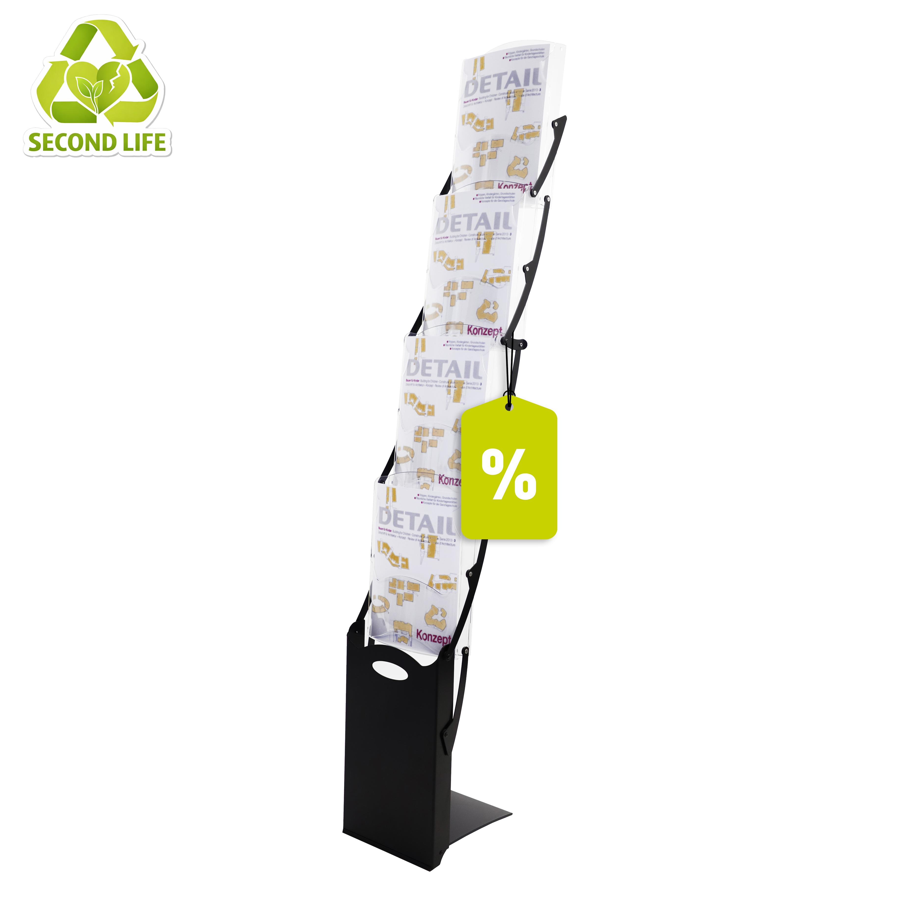 Alle Teile des Prospektständers erdacht und gefertigt in Italien.