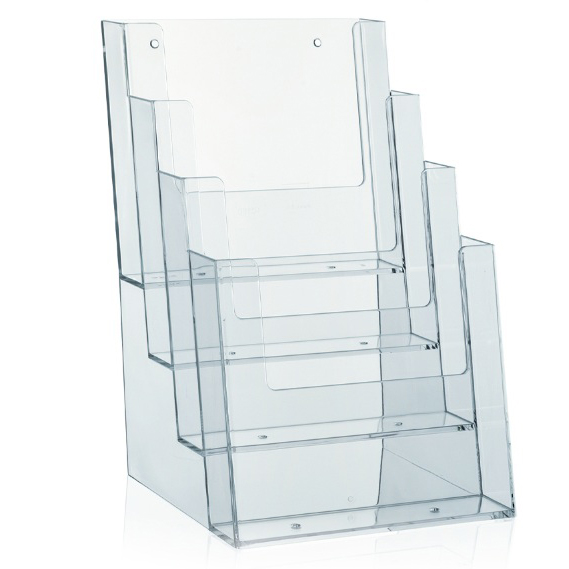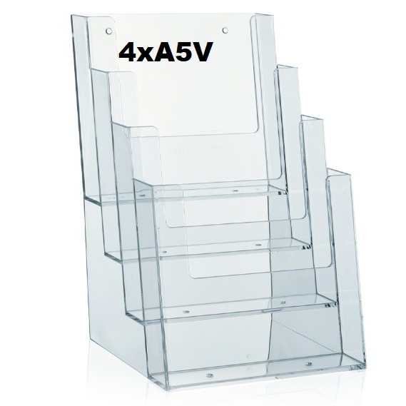 Transparente Prospekthalter für die Theke in verschiedenen Größen. Polystyrol-Spritzguß kristallklar.