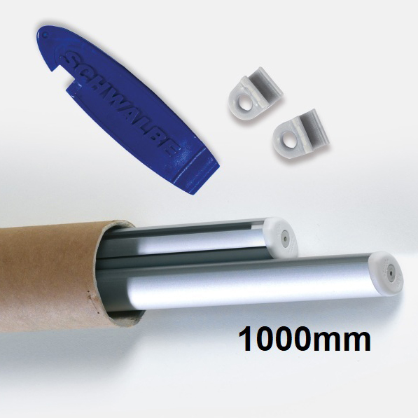 Silber eloxierte Aluminium Profile klemmen Drucke von 0,2 bis 0,7mm auf ganzer Länge sicher ein.