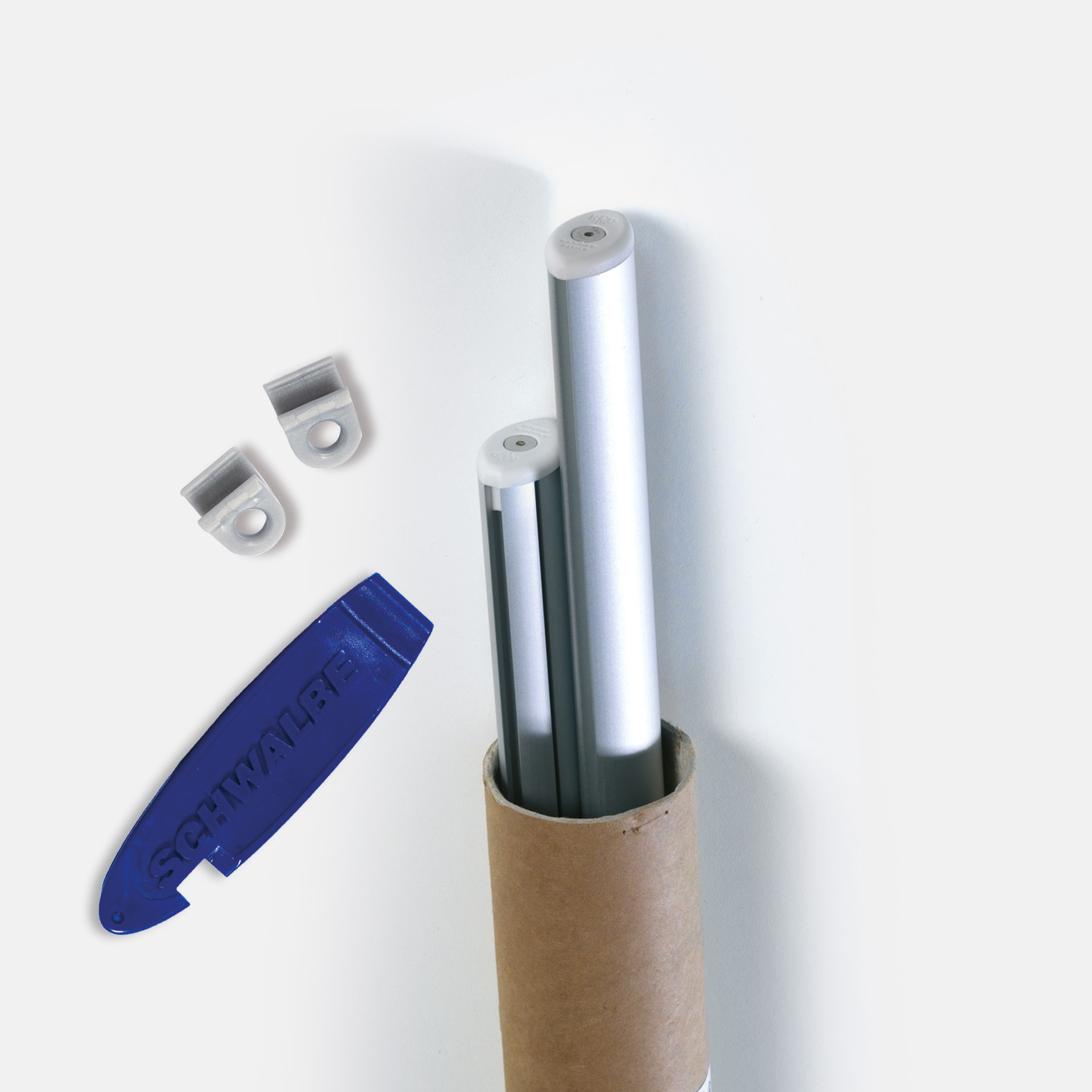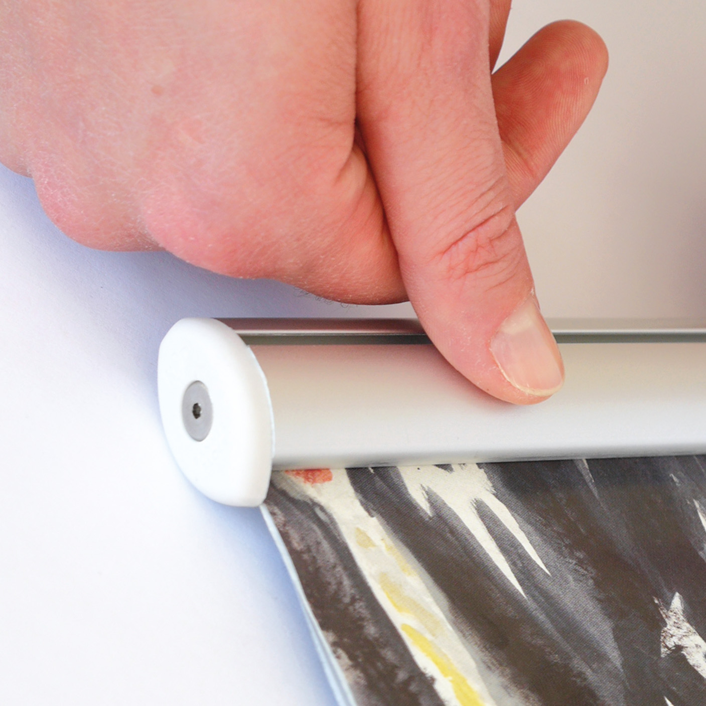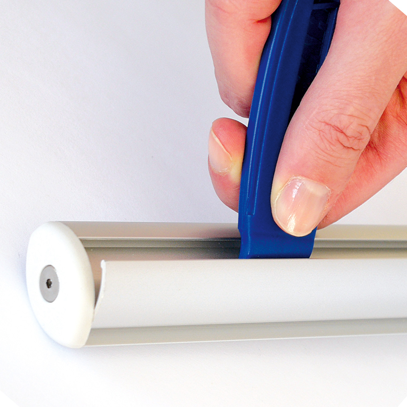 Kunststoffösen für die Aufhängung sind im Lieferumfang dabei und werden an gewünschter Positione einfach eingeklipst. Das Klemmprofil Bannerblock für Drucke zur Abhängung gibt es in gängigen Längen als Doppel-Set inklusive Ösen und praktischem Profil-Öffner.