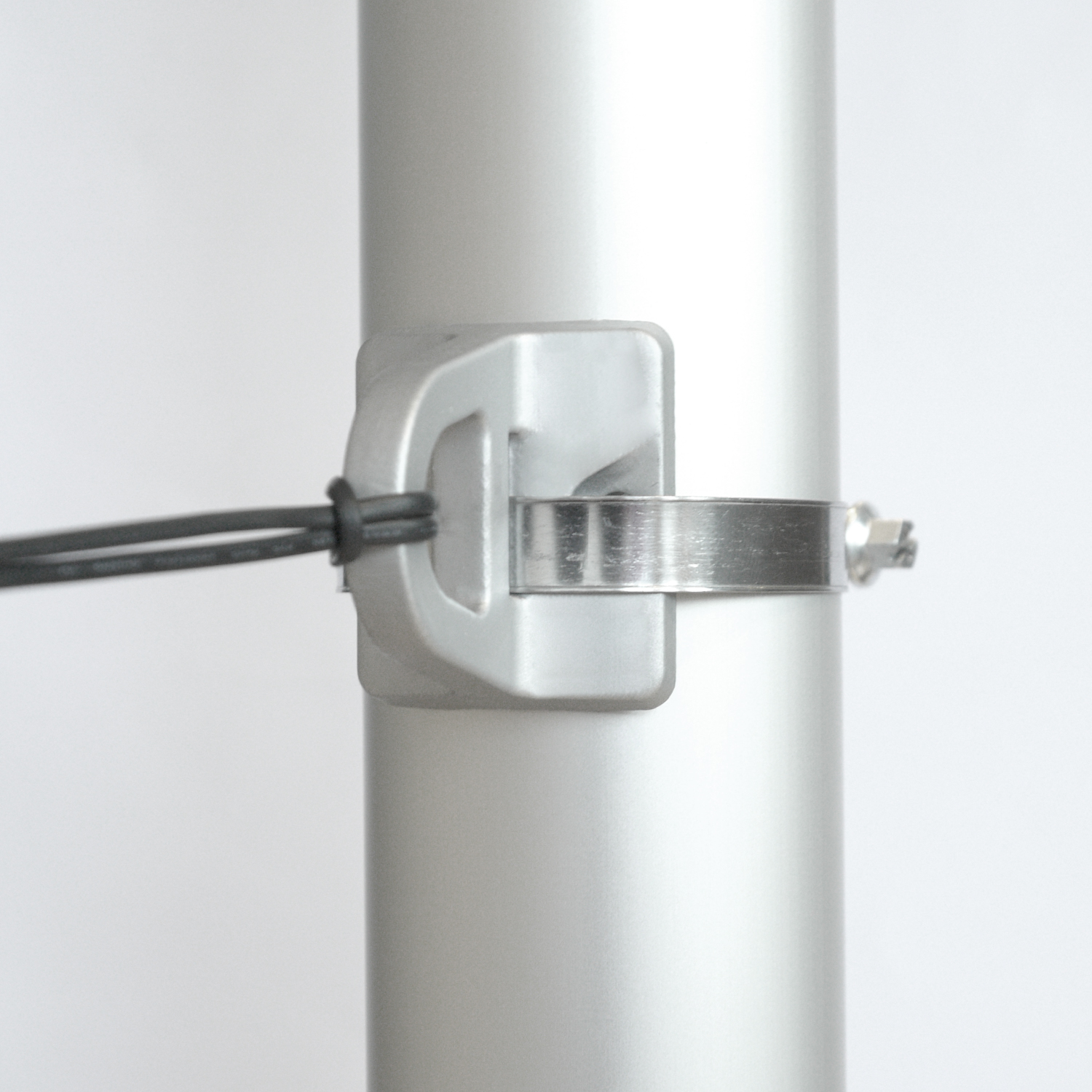 Befestigungssystem für Wand- und Stangenbanner. Kann als Haken verwendet werden, um großformatige Banner an Gebäudefassaden oder Fahnenmasten zu befestigen. Die Klemmen ermöglichen auch die Befestigung an einem Mast. Dank der Rillen auf der Rückseite bleibt die Befestigung perfekt senkrecht zur Kreisfläche. Hochwertiger Metalldruckguss, auch für den Einsatz im Freien geeignet.