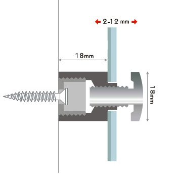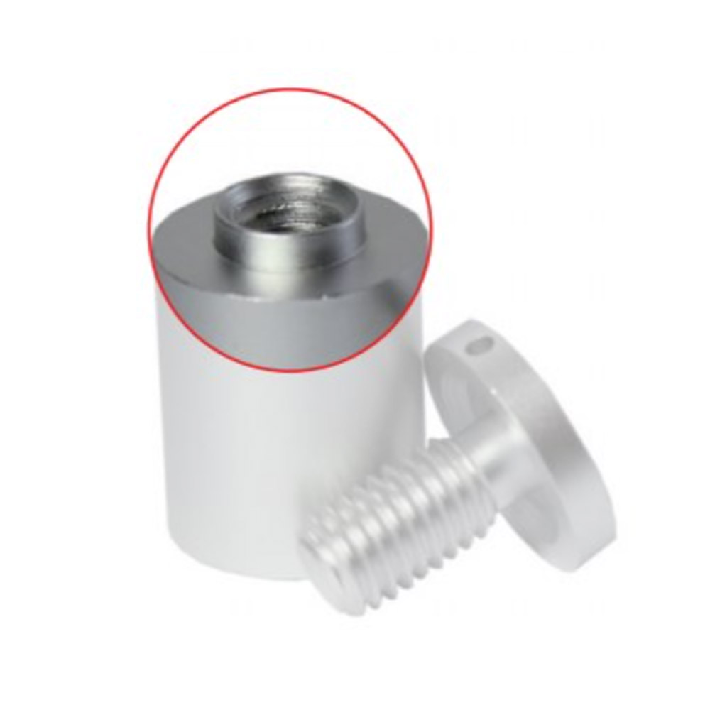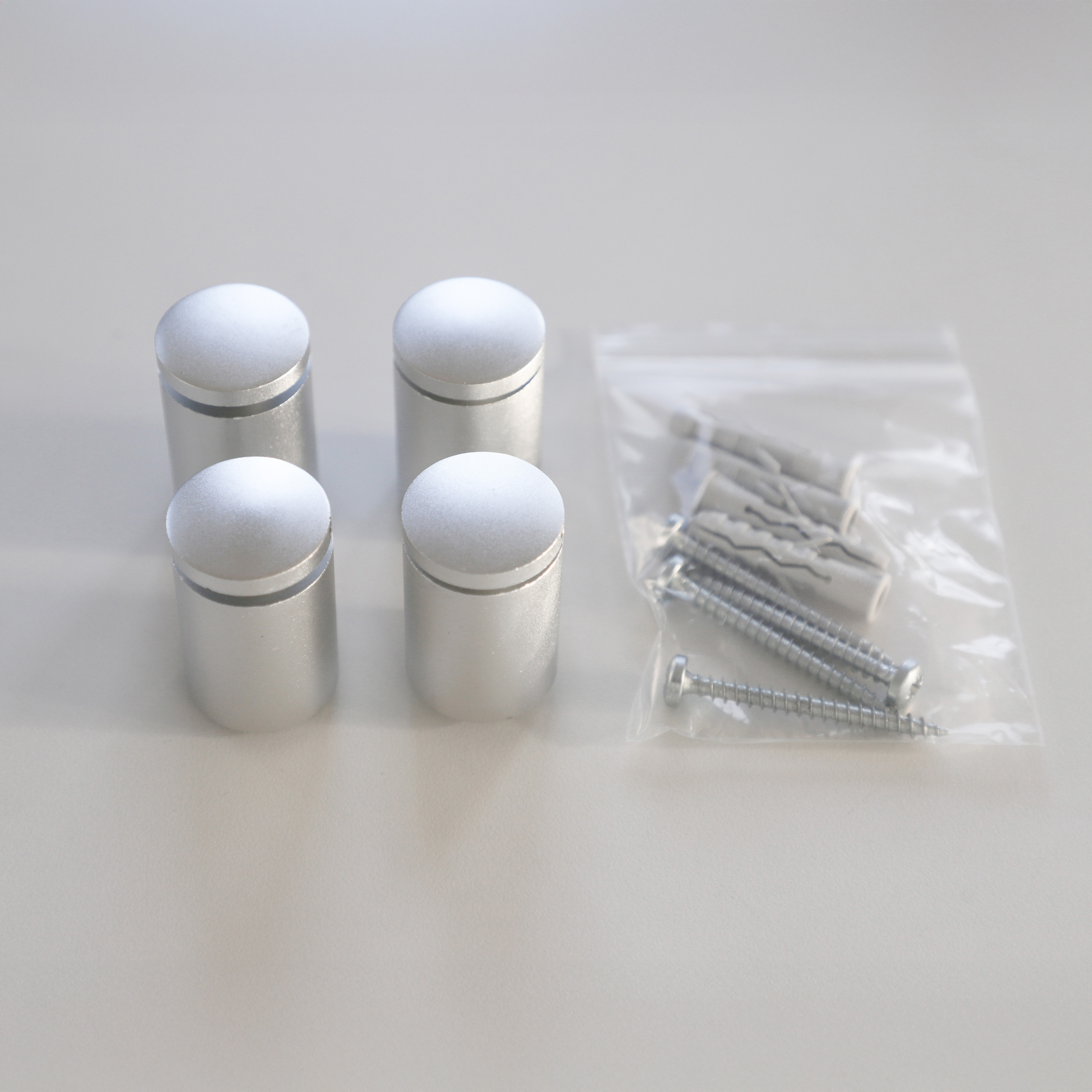Elegantes Schraubsystem aus Alu. Halter wandmontieren, Kopf durch das Paneel in den Halter schrauben. Seitliche Lochbohrung für Verschrauben des Kopfes. Fingerabdruck-resistent manipulationsgeschützt dank Linksgewinde. Befestigung: Schraubsystem, frontale Montage. Material: veredeltes Aluminium in silber-matt