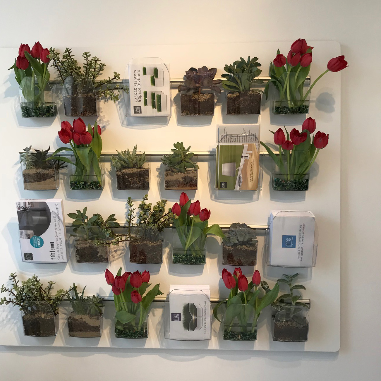 Modular and versatile: Brochure pockets for flyers, plants, or pens can be added, rearranged, or removed as needed.