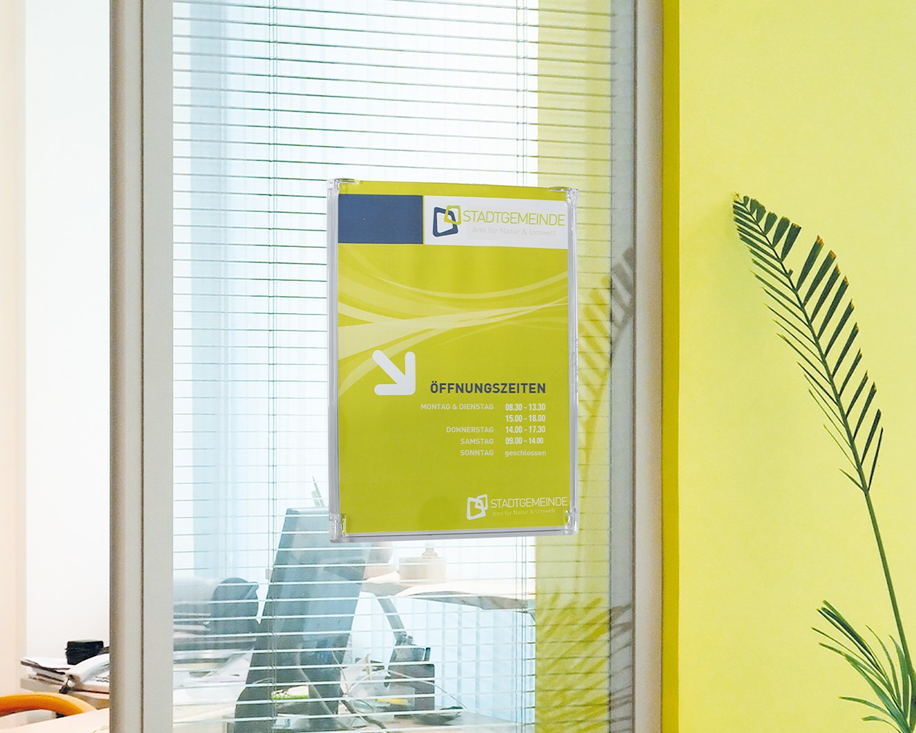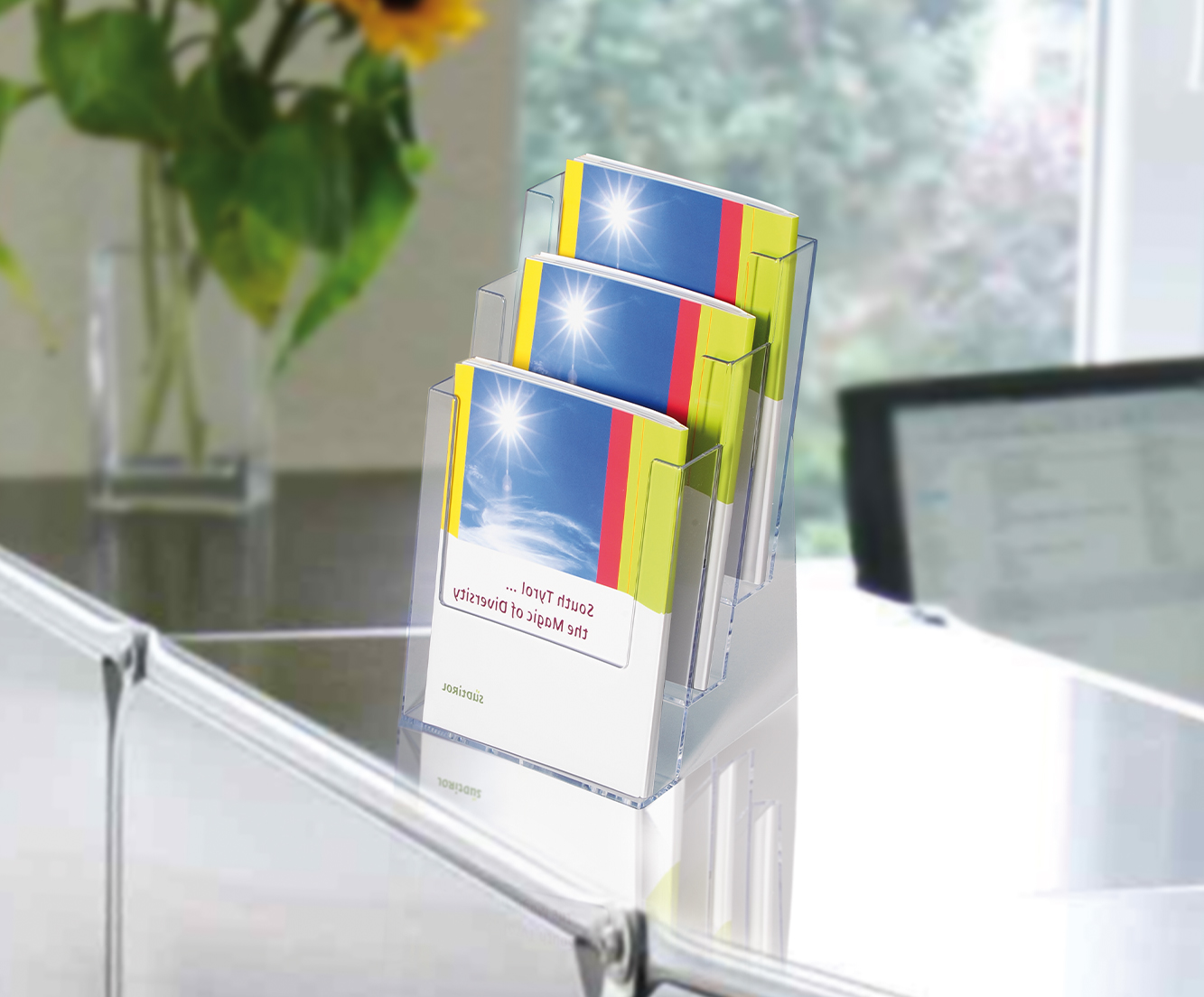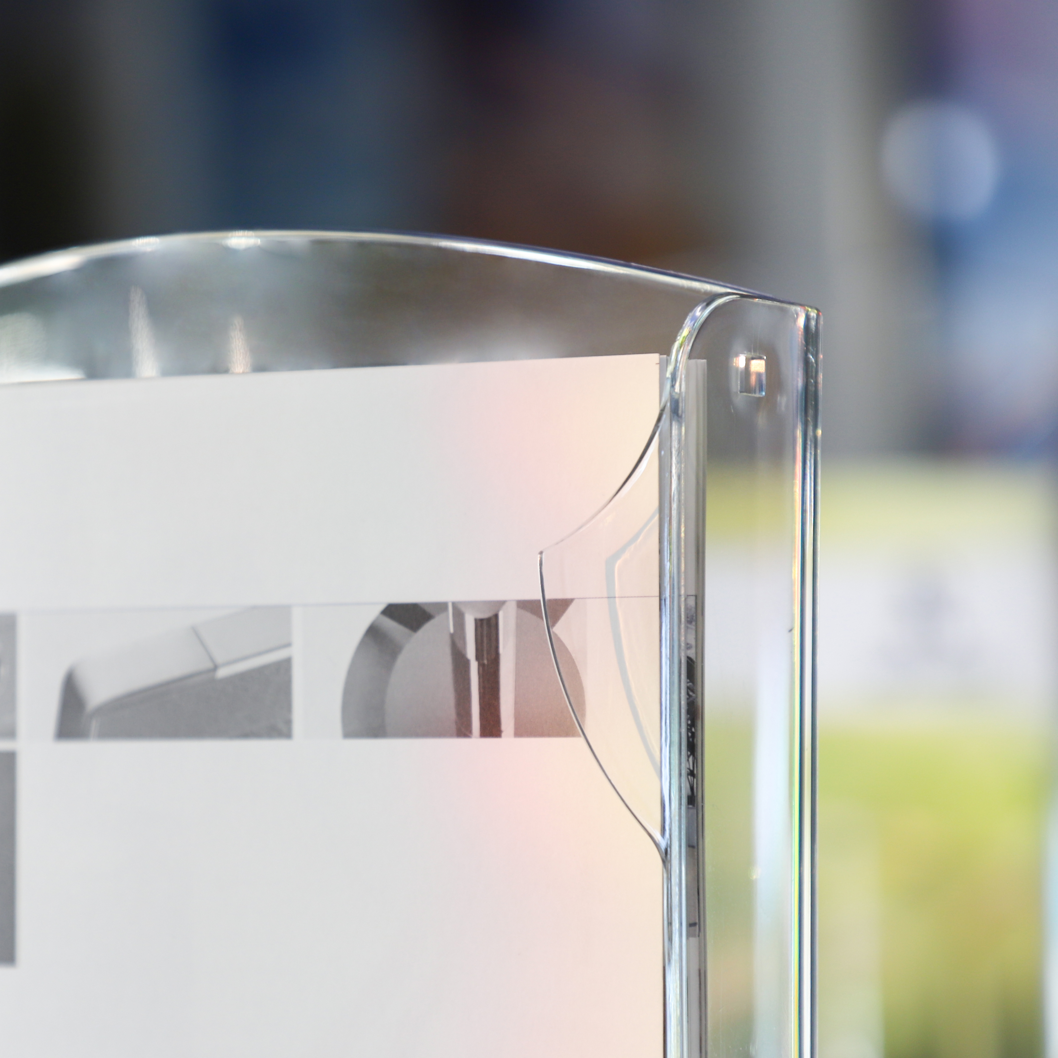Only from us: single-sheet tilt protection for perfect presentation of even thin flyers.