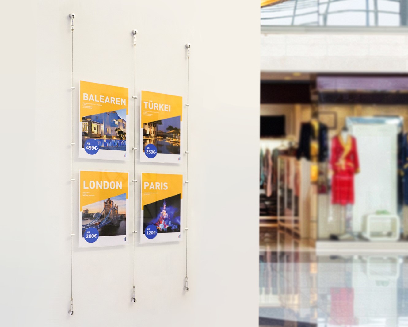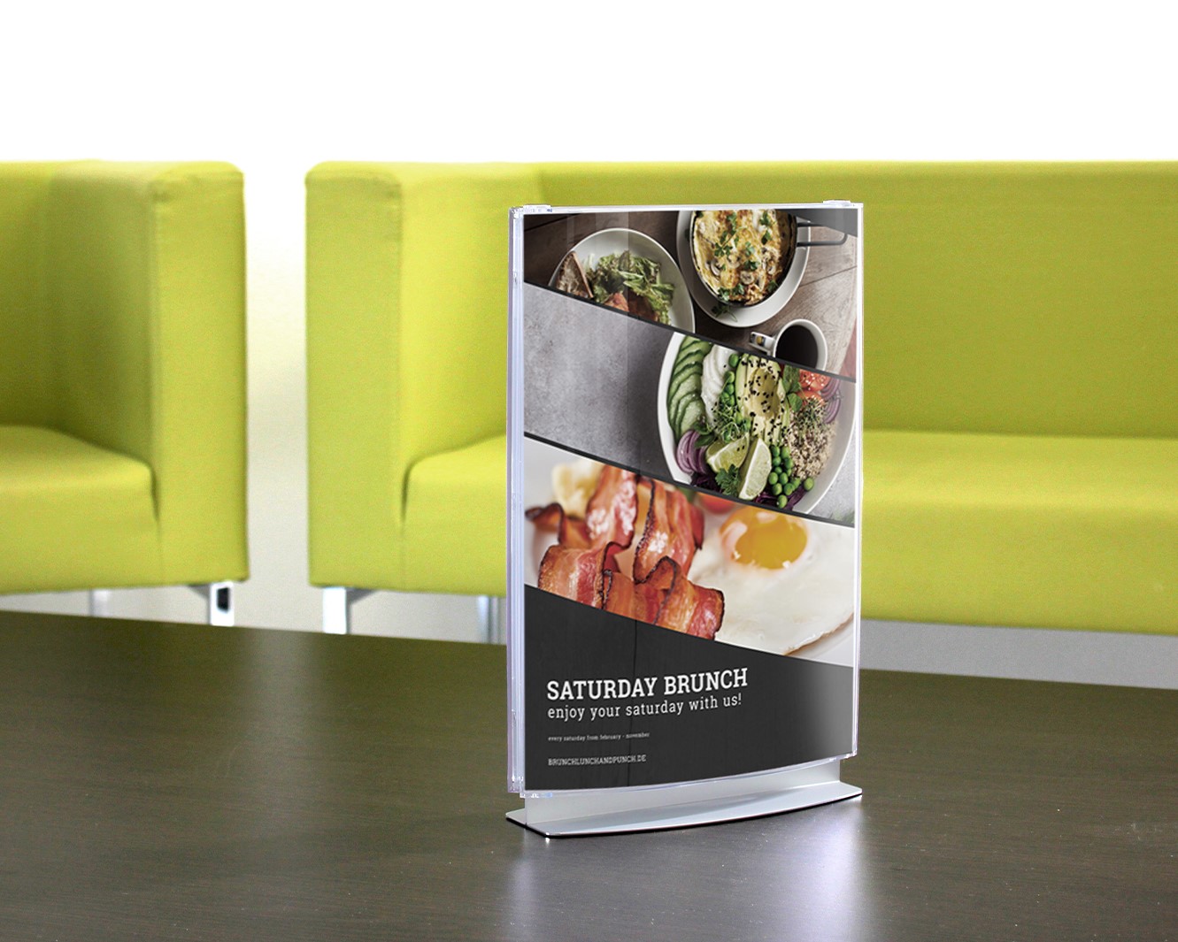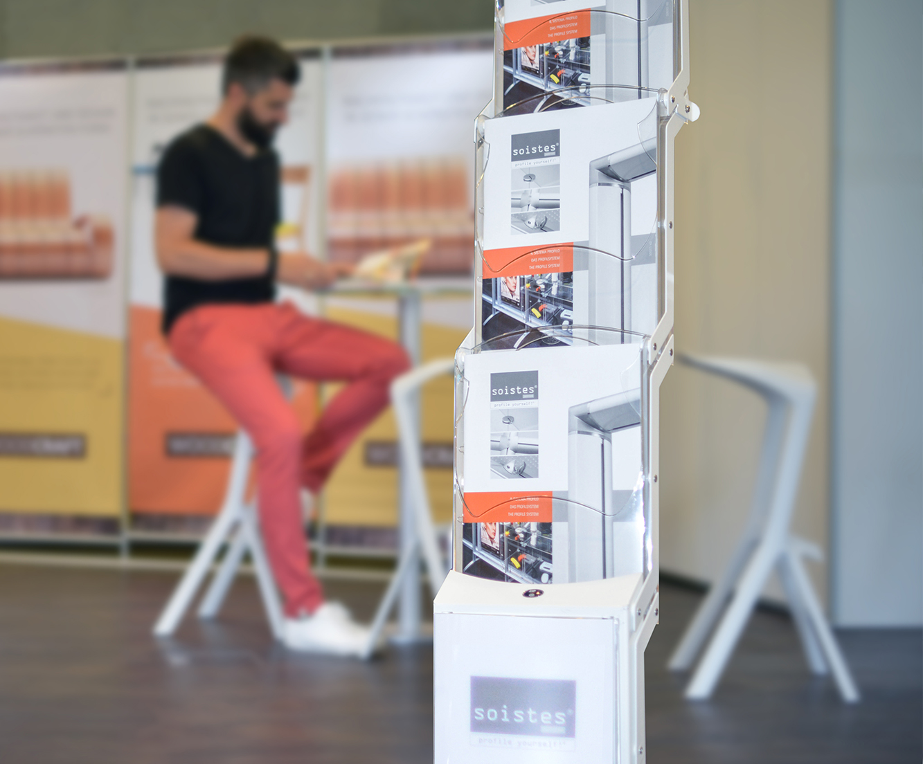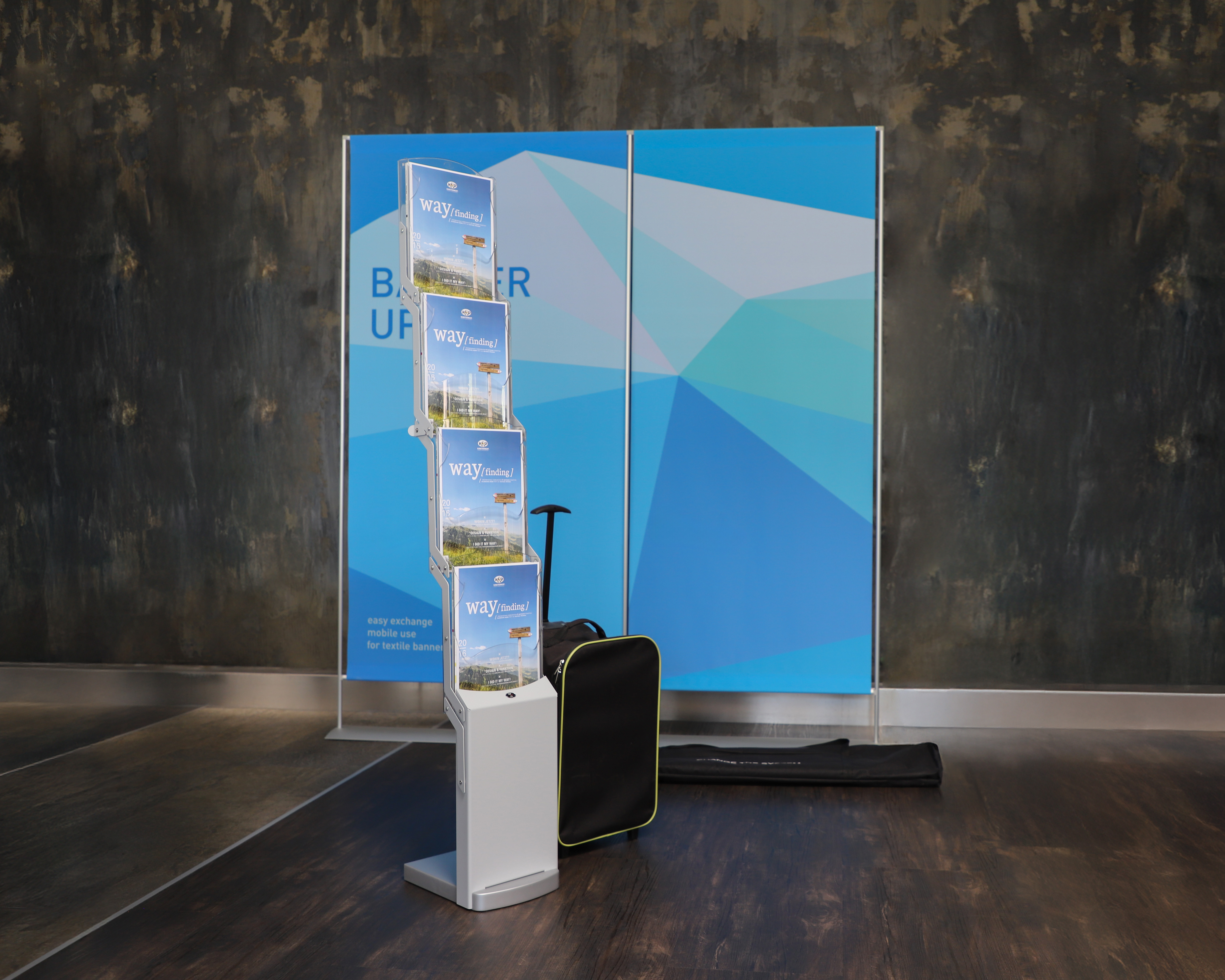 Only from us: single-sheet tilt protection for perfect presentation of even thin flyers.