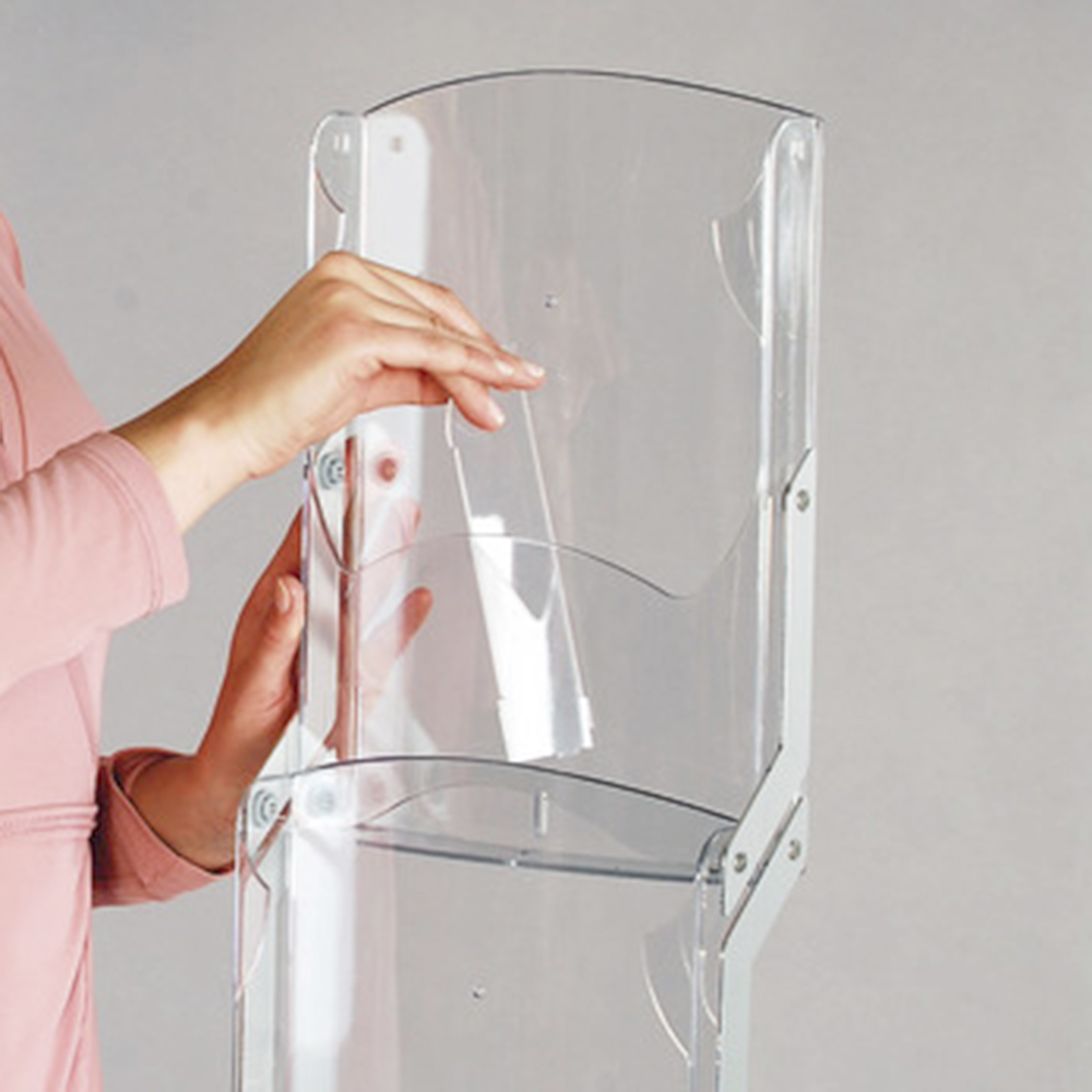 Zip divider restyle made of transparent acrylic. Divides A4 brochure pocket into 2 A6 trays. Suitable for our zip brochure stands.