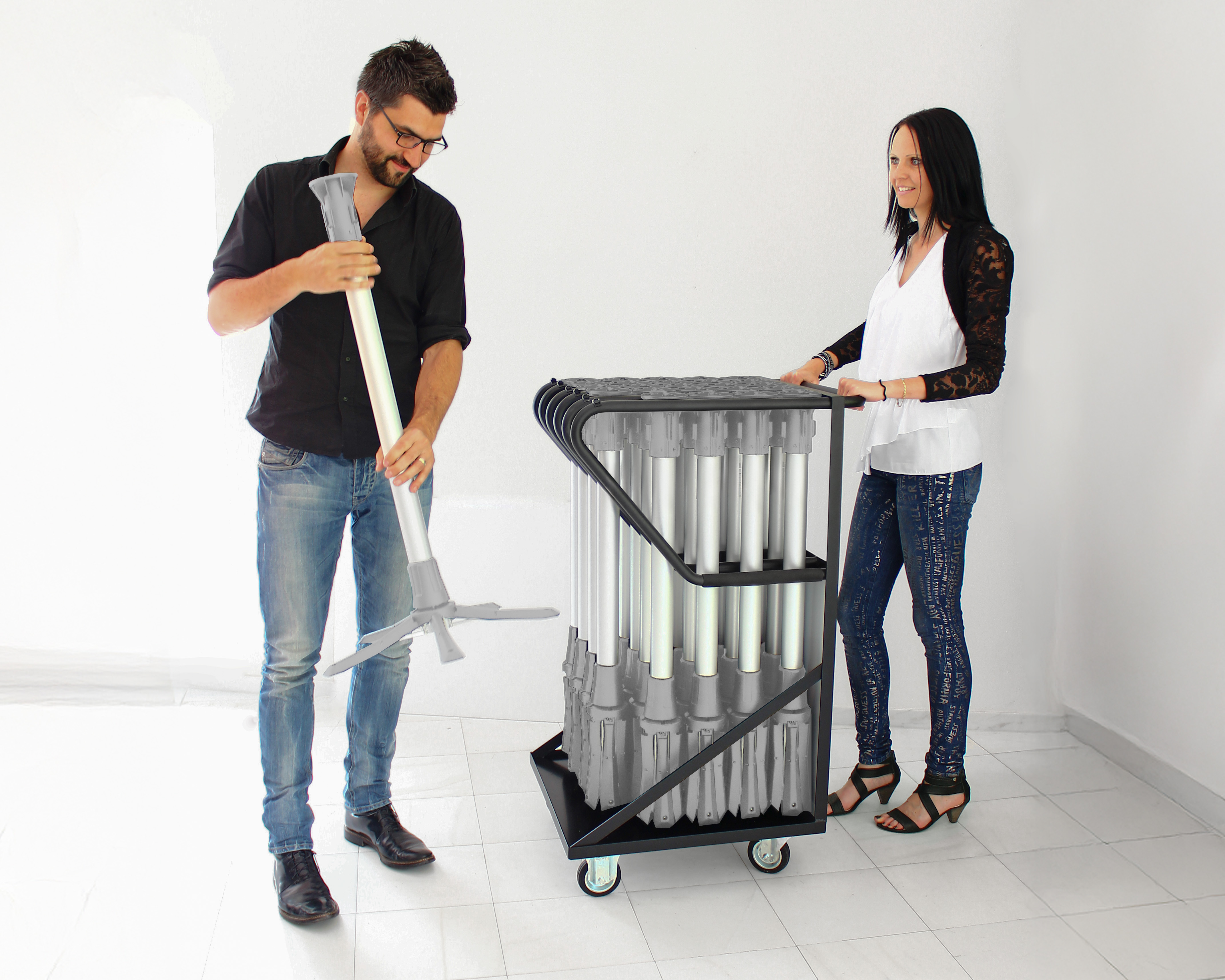 For transport and storage, choose the optional practical transport bag with shoulder strap or the foldable trolley.