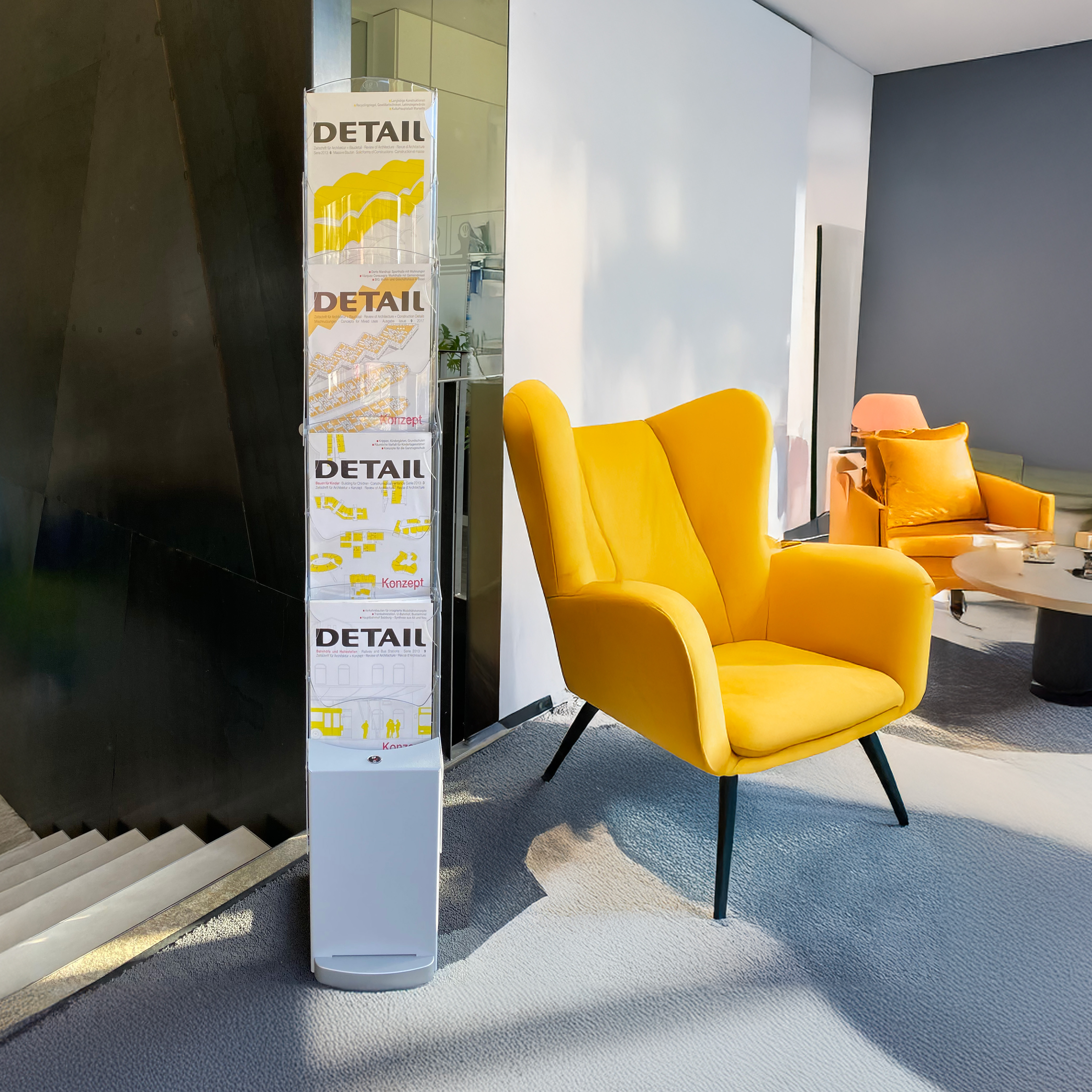 All parts of the brochure rack are designed and manufactured in Italy.