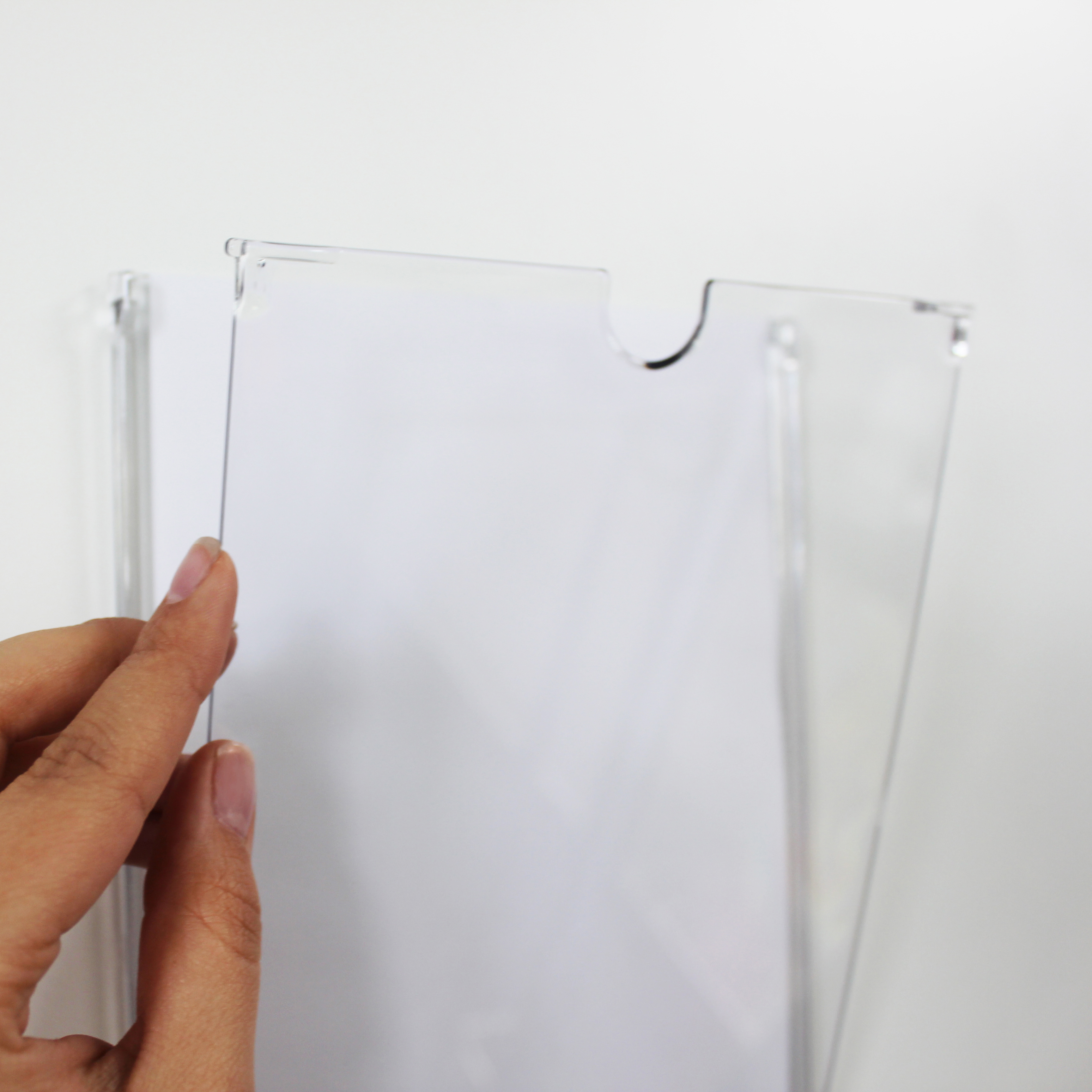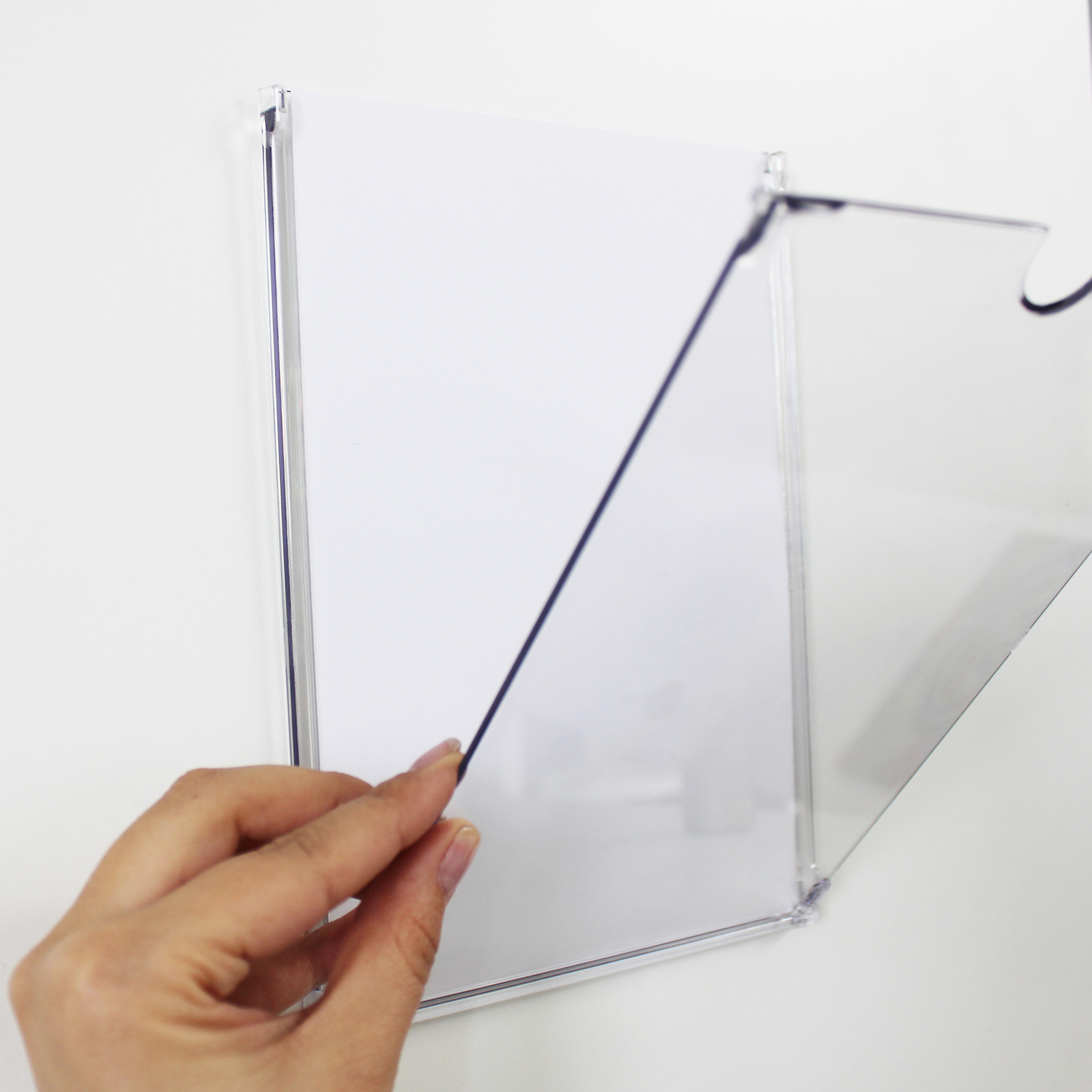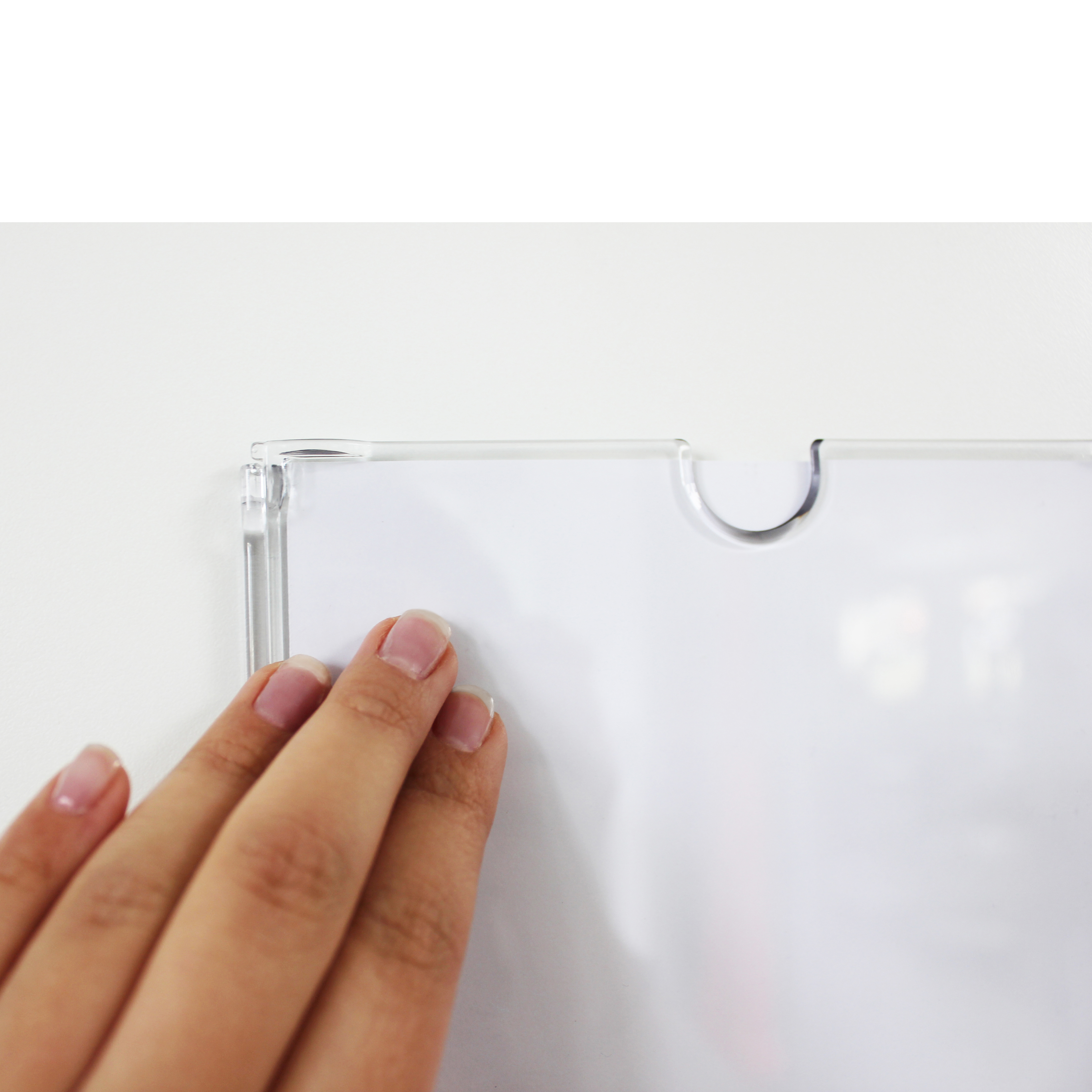 Convenient, quick and transparent: the patented information pocket flap can be mounted to all smooth surfaces with transparent double adhesives. We re-