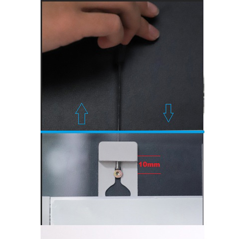 The two hooks can be individually height-adjusted by 10 mm thanks to the integrated grub screws, allowing fine alignment of the wall-mounted panels along the horizontal axis. This compensates for angled drill holes and ensures straight suspension.