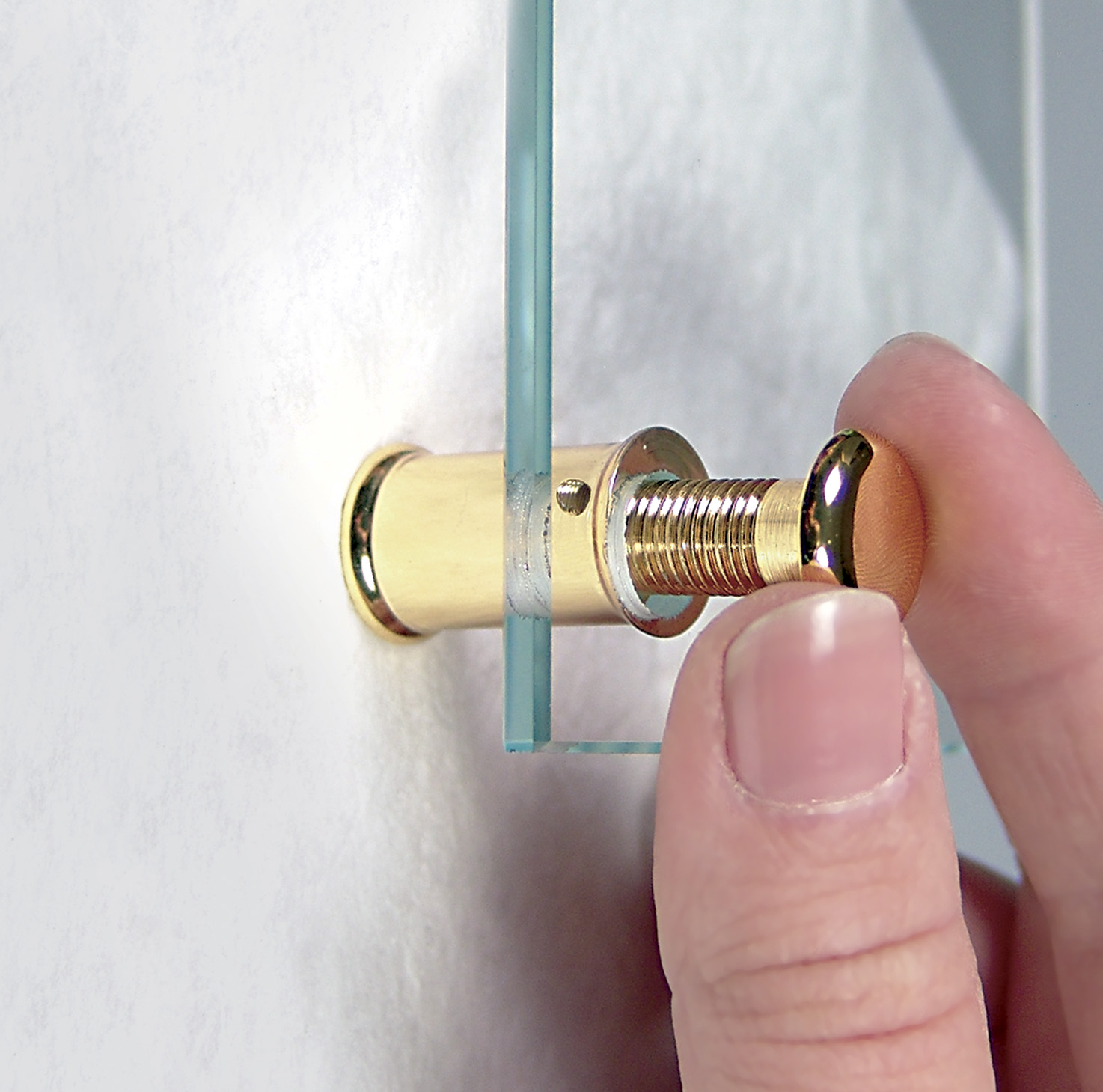 Fixer le support au mur, poser le panneau, insérer la tête dans le support à travers le panneau et la bloquer dans le support avec une vis sans tête latérale pour éviter toute manipulation.