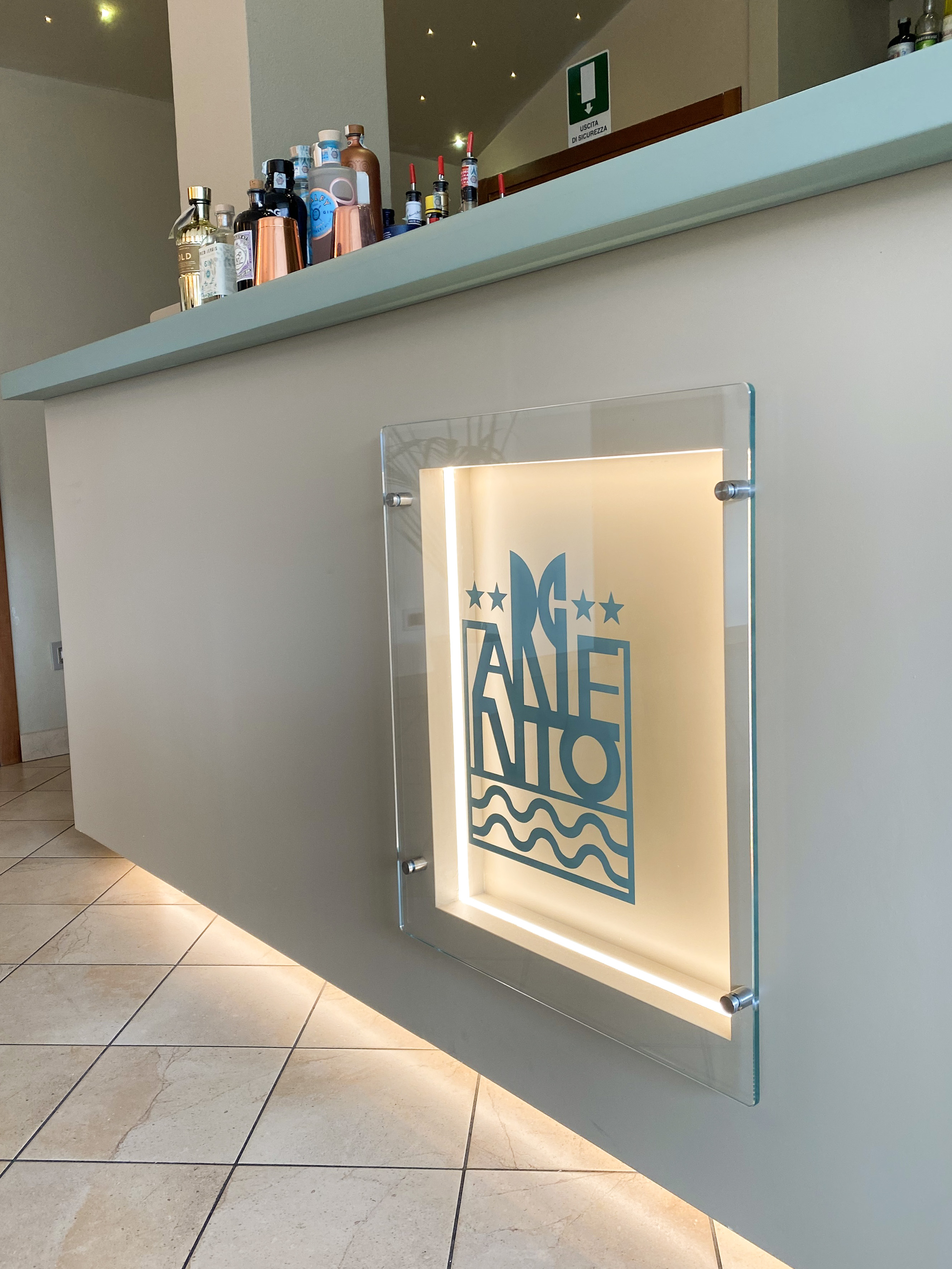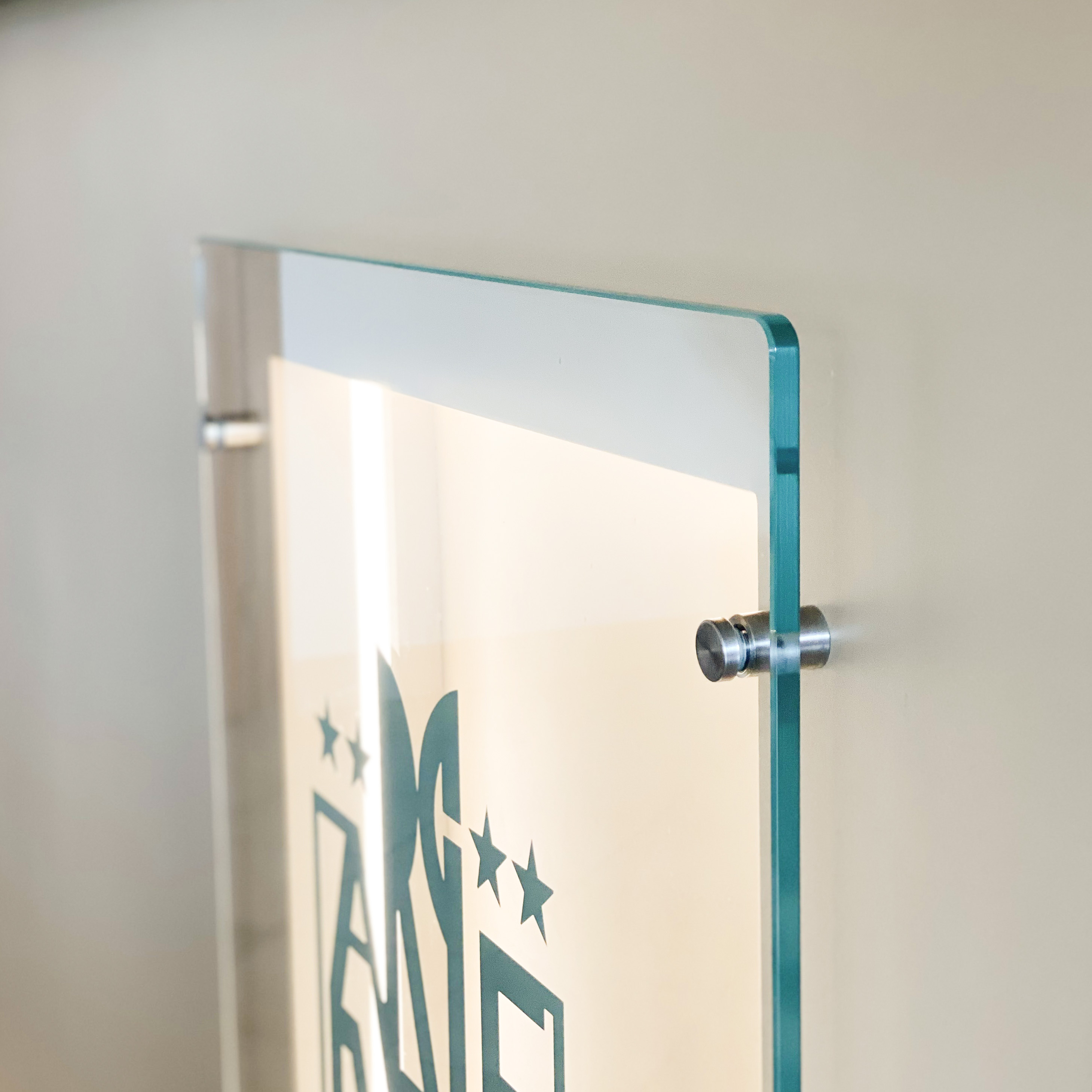 Entretoise design pour la signalisation des bâtiments ou la fixation de panneaux imprimés en acier inoxydable de haute qualité (AISI 304) avec technique de fraisage spéciale pour l'optique à facettes.