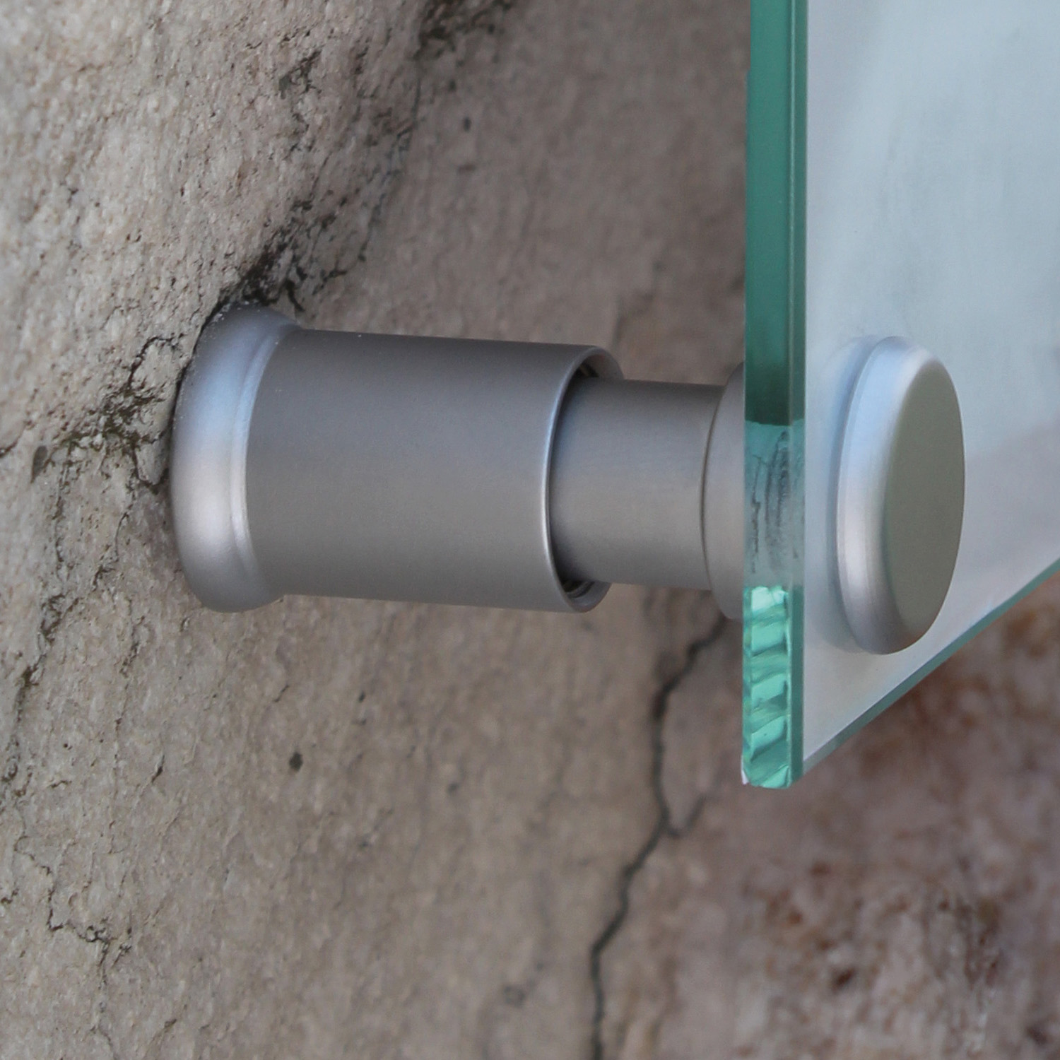 Fisso Zoom L'entretoise pour compenser les murs irréguliers : Monter le support au mur, niveler la distance au mur, poser le matériel, sécuriser la tête à travers le panneau dans le support avec une vis sans tête latérale pour éviter toute manipulation. Le système de vis intégré dans le manchon mural permet une distance flexible au mur de 30 à 45 mm.