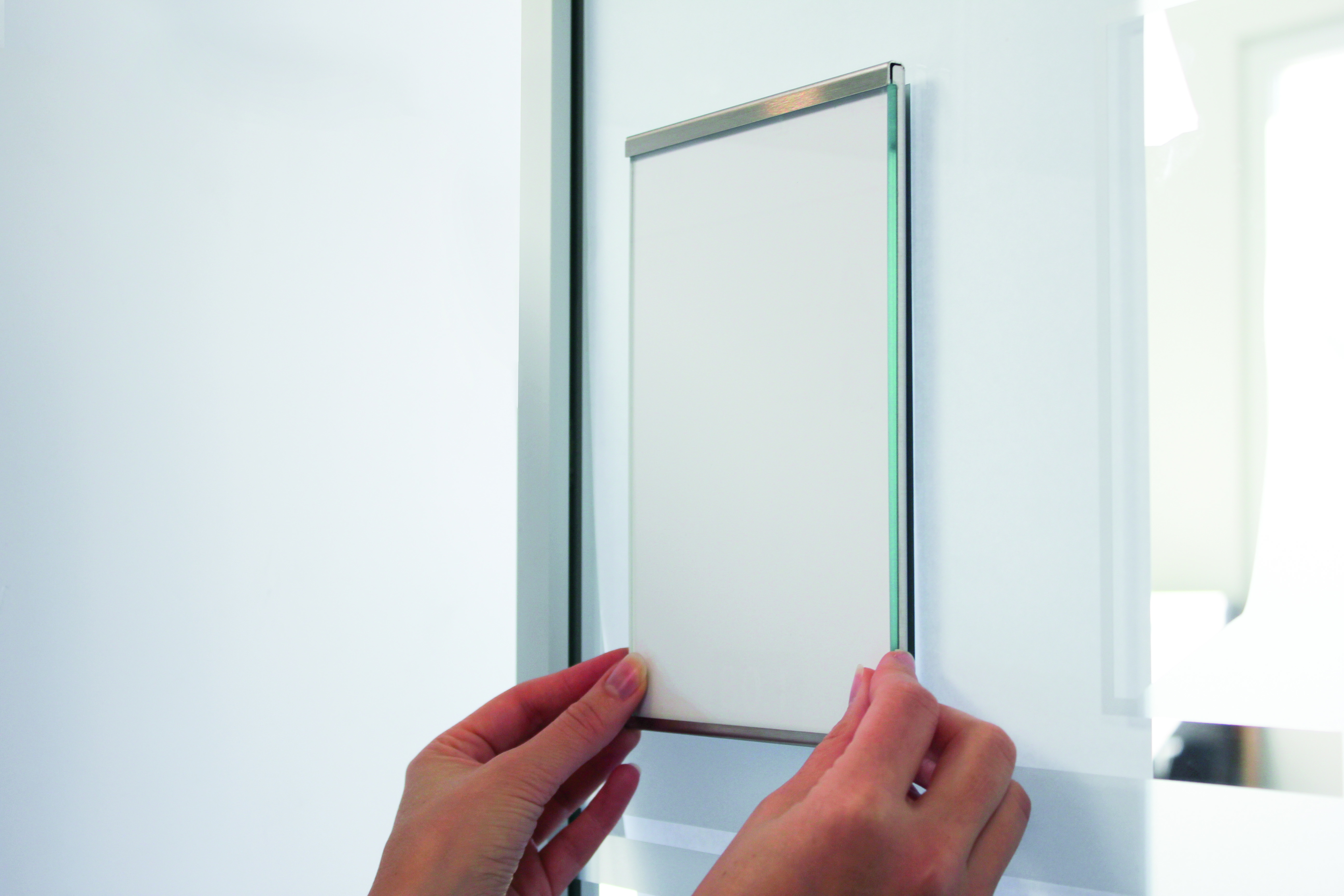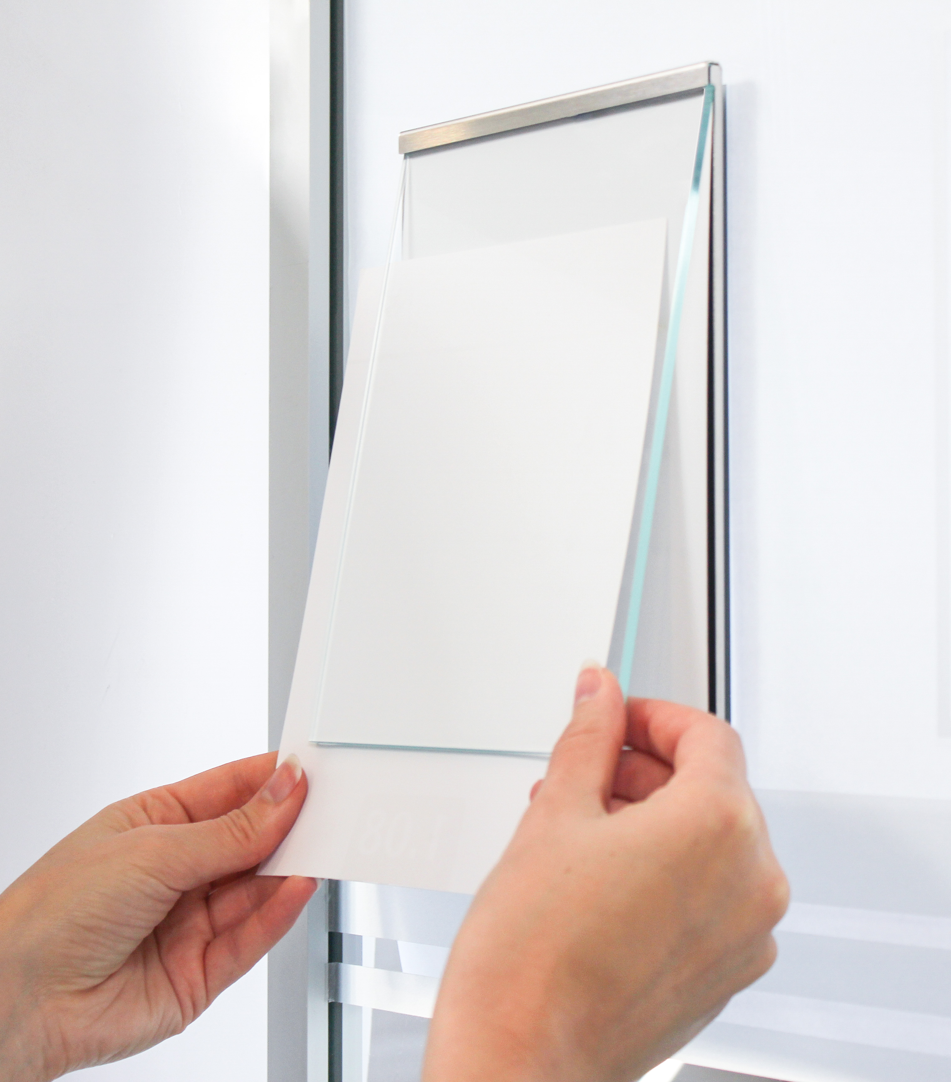Glassnox est la signalétique parfaite pour l'ambiance moderne ! Grâce à son design astucieux, toutes les informations peuvent être échangées rapidement et facilement. Les couvercles en acrylique bleu cristal sont simplement poussés vers le haut pour ouvrir le cadre. Le cadre extra-plat en acier inoxydable brossé donne à votre présentation un aspect très tendance. Tous les produits Glassnox peuvent également être fixés sur des surfaces lisses à l'aide d'un ruban adhésif spécial. Glassnox est parfait pour la signalisation élégante ainsi que pour l'échange fréquent d'informations.