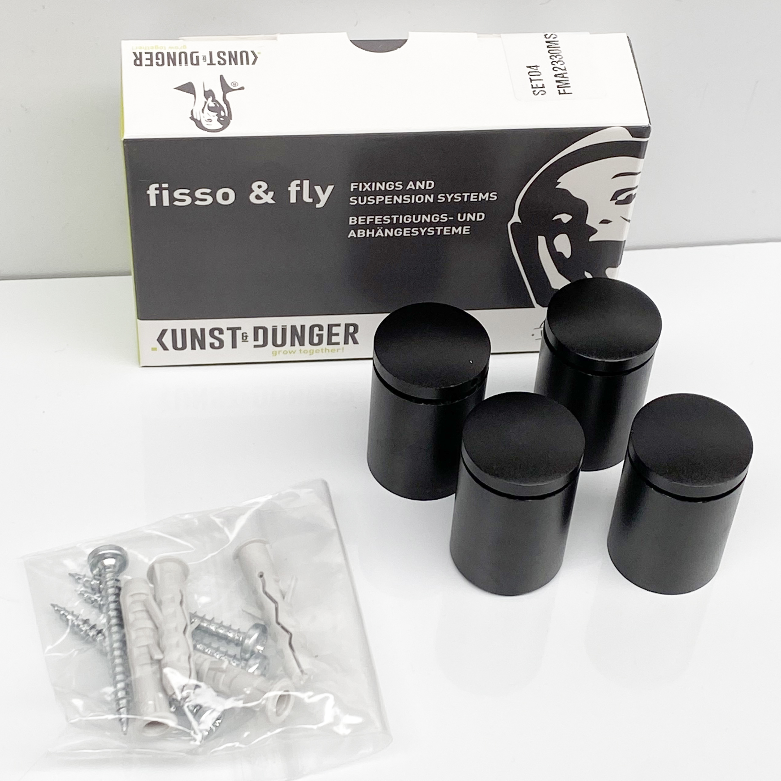 Distanziatore in tre parti con sistema a vite in alluminio, parti anodizzate color nero opaco a vista. Montare il manicotto filettato sulla parete, avvitare il manicotto distanziatore, posizionare il pannello da fissare sopra e avvitare e fissare con le teste della staffa. I manicotti distanziatori hanno un bordo rialzato che si inserisce nel foro praticato nei pannelli e facilita il posizionamento del pannello. Consigliamo quindi questo sistema soprattutto per insegne e pannelli di grande formato. La testa del supporto è fissata nel manicotto distanziatore con una filettatura sinistra. Sul bordo della testa è presente un piccolo foro che consente di serrare la testa nel manicotto distanziatore con un attrezzo appropriato o un perno metallico. Questo e la filettatura sinistra rendono il supporto affidabile e a prova di manomissione.