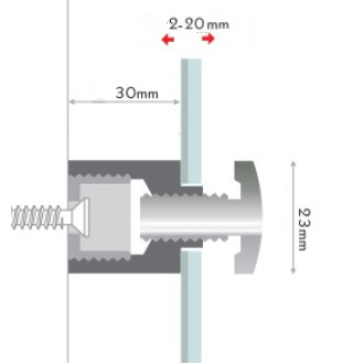 Montare il manicotto filettato sulla parete, avvitare il manicotto distanziatore, posizionare il pannello da fissare sopra e avvitare e fissare con le teste.
