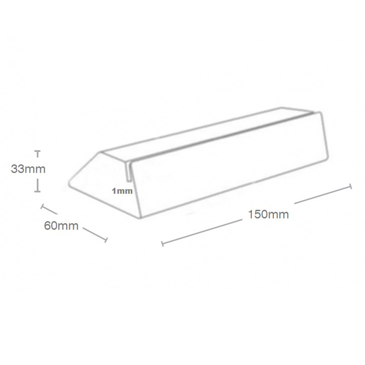 Supporto in polistirolo trasparente stampato a iniezione per la presentazione inclinata di stampe con spessore di 1 mm (150 mm e 100 mm) o 2 mm (210 mm).