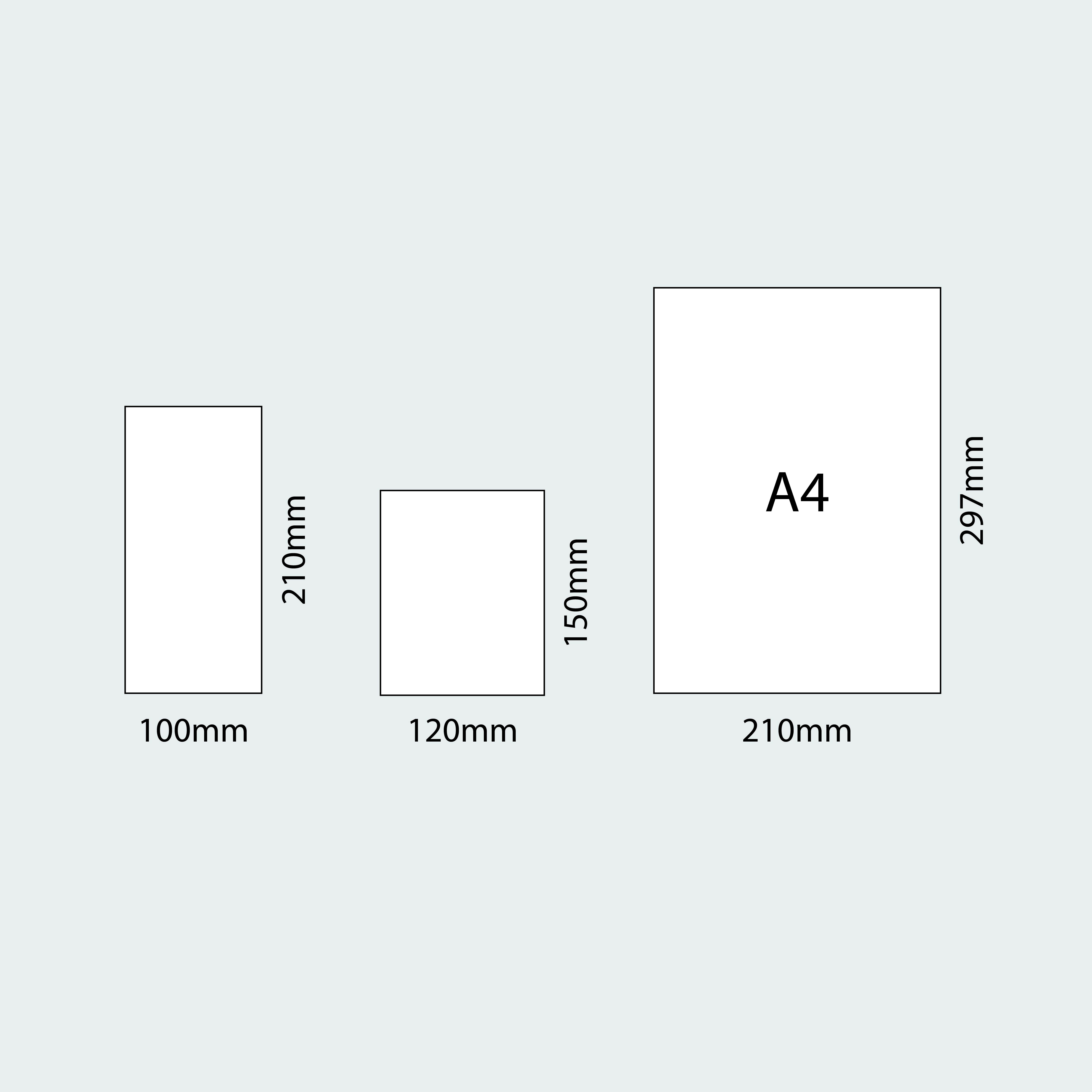 Supporto per banchi e banconi in polistirene trasparente stampato a iniezione per la presentazione bifacciale di stampe con spessore di 1 mm (100 mm e 150 mm) o 2 mm (210 mm)