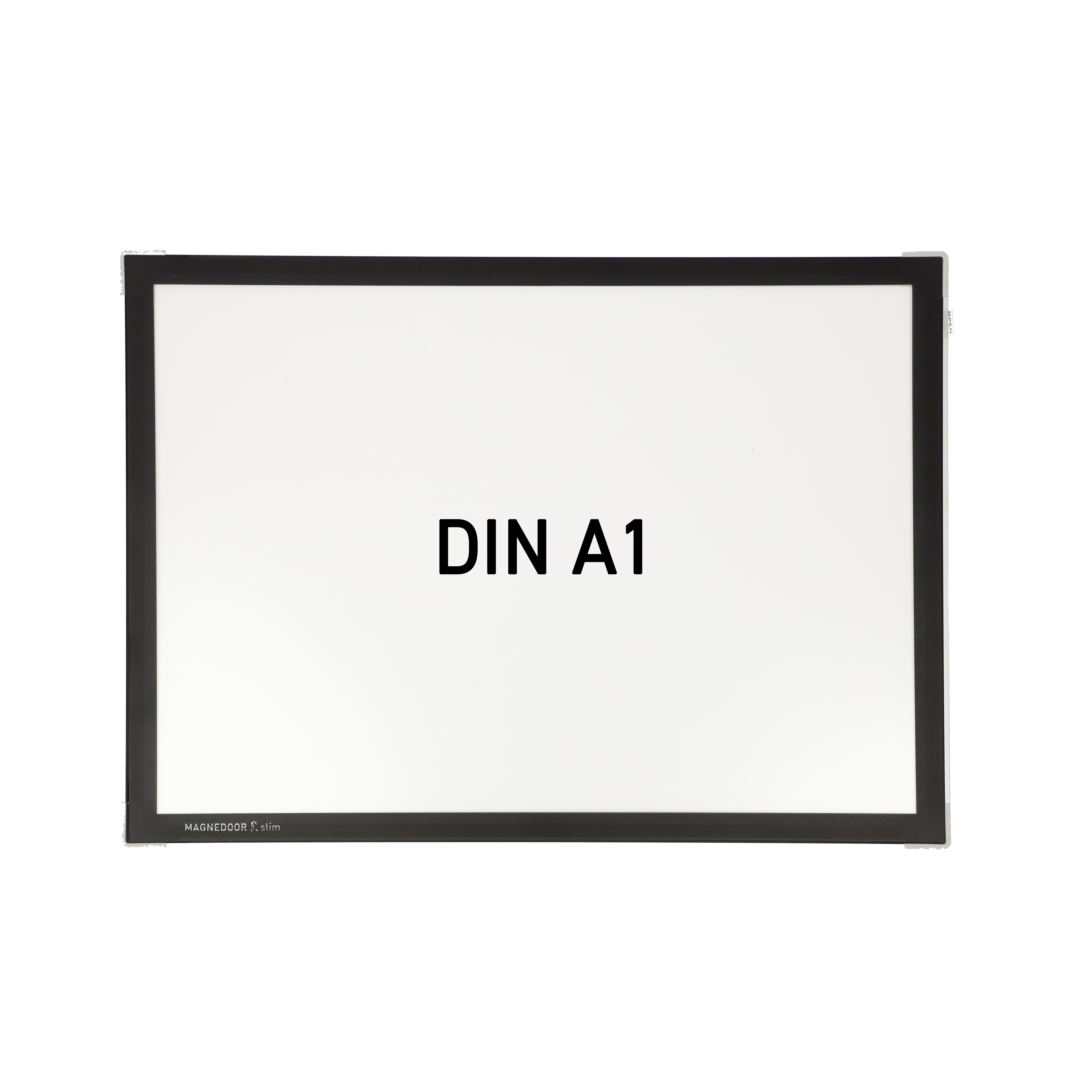 Cornice per il cambio veloce di poster e banner con chiusura magnetica, aspetto snello e leggero. Alluminio anodizzato, robusto retro in materiale plastico, bordi stampati di color nero antracite, foglio protettivo in PVC flessibile anti-riflesso completamente rimovibile. Un robusto listello magnetico rende possibile il fissaggio del foglio protettivo alla struttura. Cambiare informazioni è quindi facile e veloce adatto a montaggio orizzontale e verticale. Ideale per poster pubblicitari, affissioni, manifesti, cartelli, menù, listini prezzi e fogli informativi.