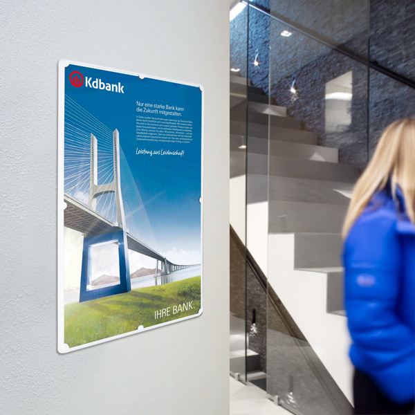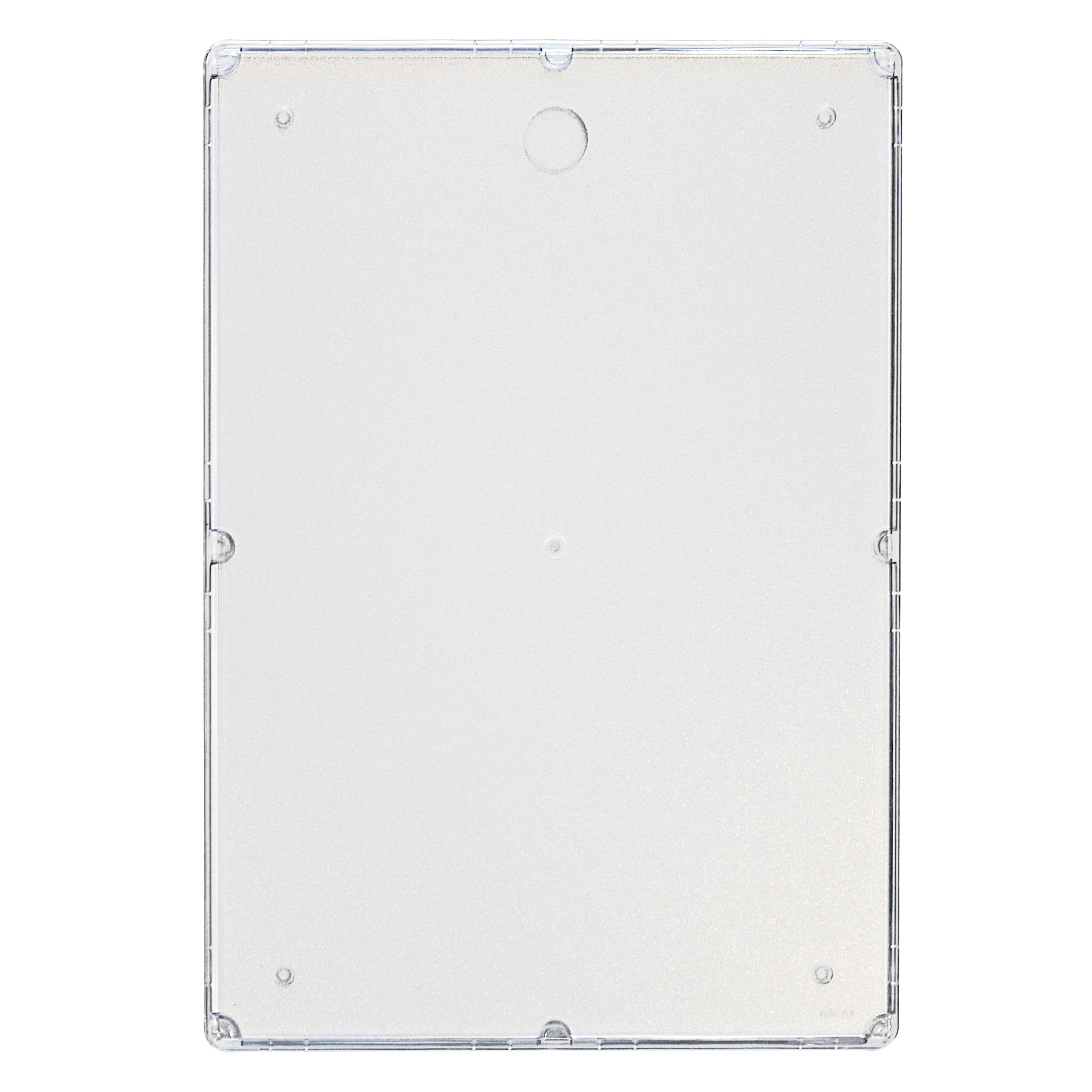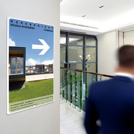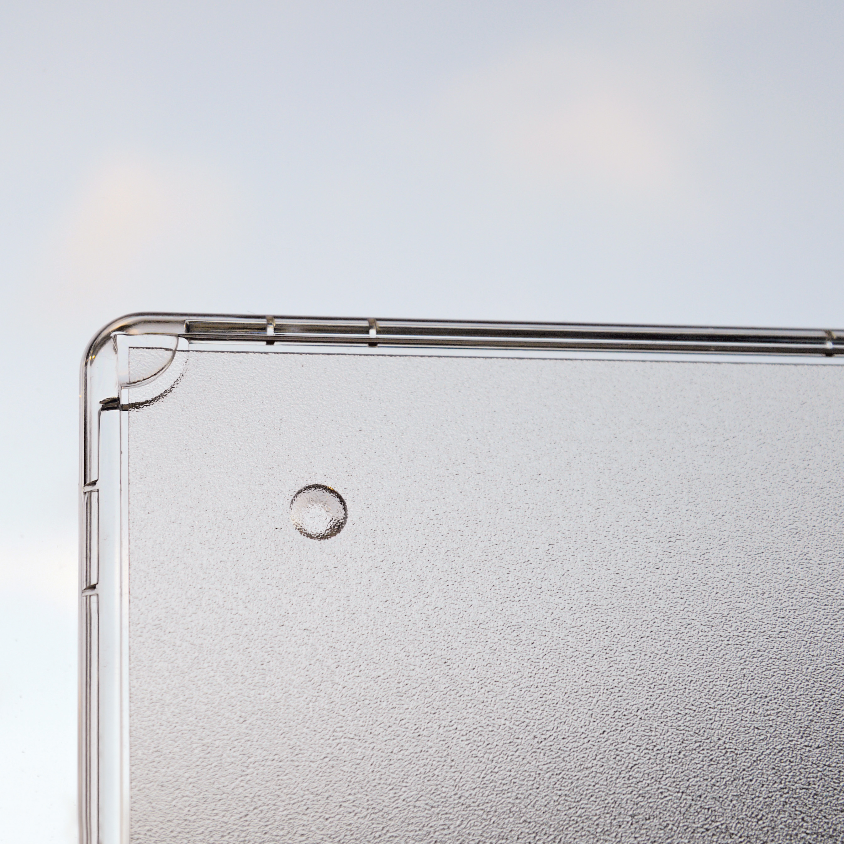 Kunststoff-spritzguss mit flexibler Cover-Folie und transparentem Doppelkleber für einfachen Infotausch.