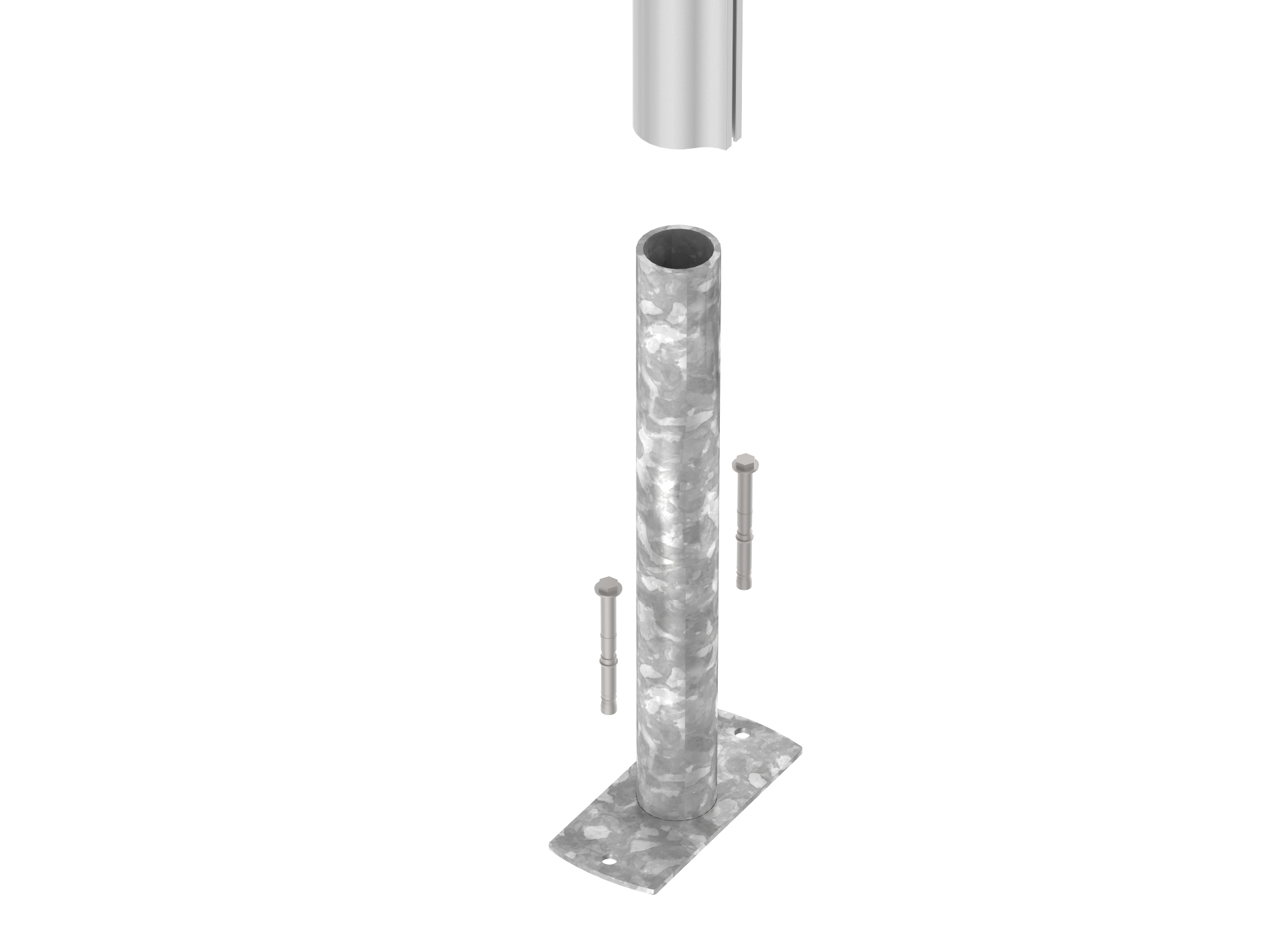 Aufschraubhülse aus verzinktem Eisen mit Schrauben für Pfosten Wegeleitsystem Signcode® extern floor.