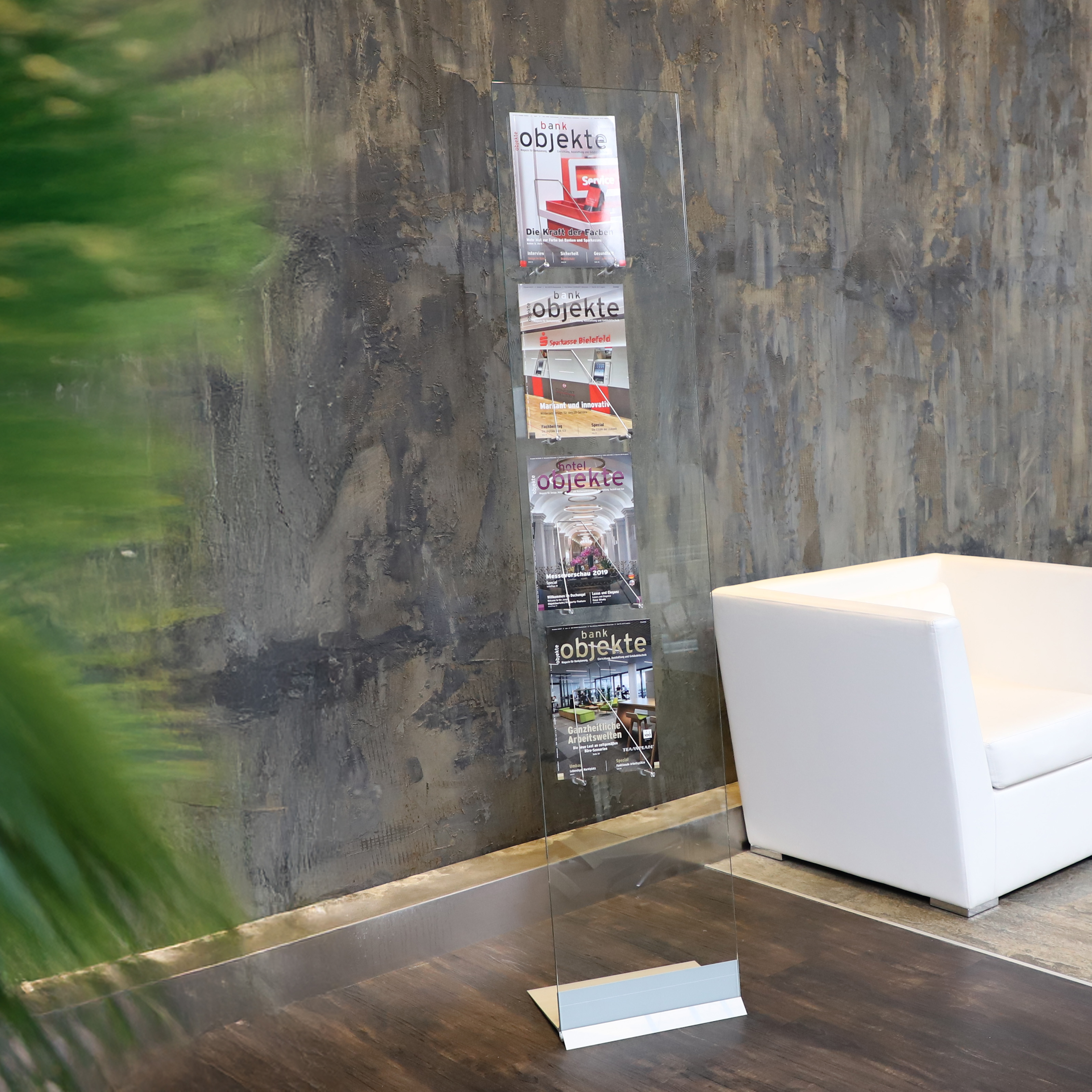Treat yourself with the luxury of a very special brochure presenter made from glass, stainless steel and aluminium.