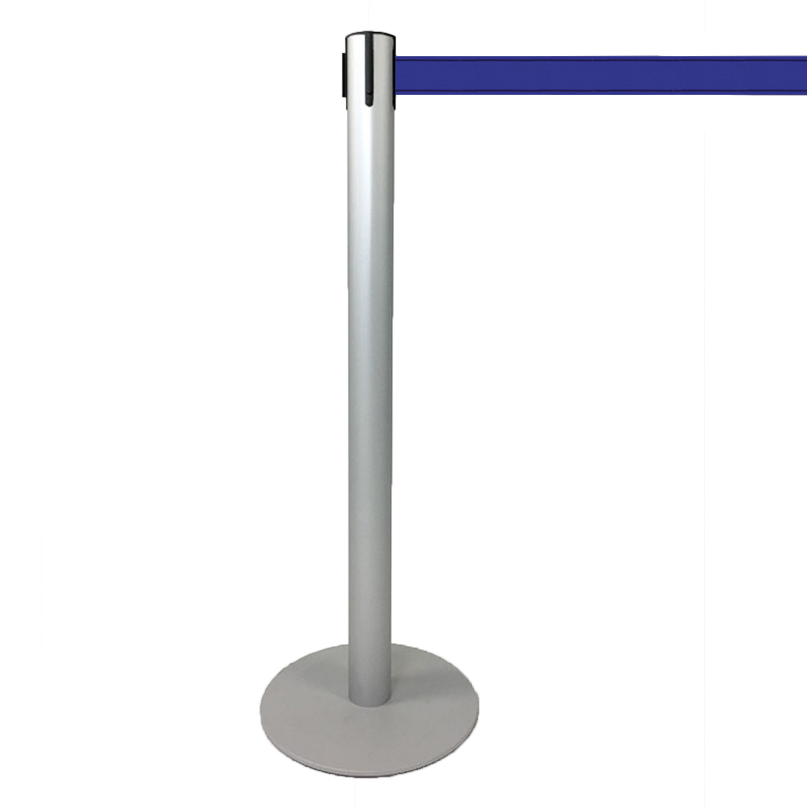 Barrier post in matt black with belt in various colours - or without belt as a counterpart post for attaching the belt of a second post.Everything you need for easy self-assembly is included in the delivery.Queue posts made of anodised aluminium in matt black: easy to clean, fingerprints and water droplets remain invisible.The belts for the crowd control posts are woven especially for us in Germany. The solution-dyed yarn is highly lightfast, crease-resistant and dirt and dust-repellent. Secure crowd rectractable queue barriers: the centrifugal brake ensures controlled belt retraction without risk of injury and thus meets the highest safety standards. The base is flattened with one of the lowest edges and guarantees accessibility even for wheeled suitcases, baby carriages and wheelchairs.All components of our retractable queue barriers are manufactured in Germany and northern Italy by long-standing family-owned partner companies according to our specifications. Assembly and quality control take place in our workshop in the Italian Alps. Our tip: Logo printing on belts is available from a quantity of 1 in just a few days.