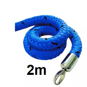 First Class stanchion for queue management with rope, polished steel high gloss chrome plated with protection varnish