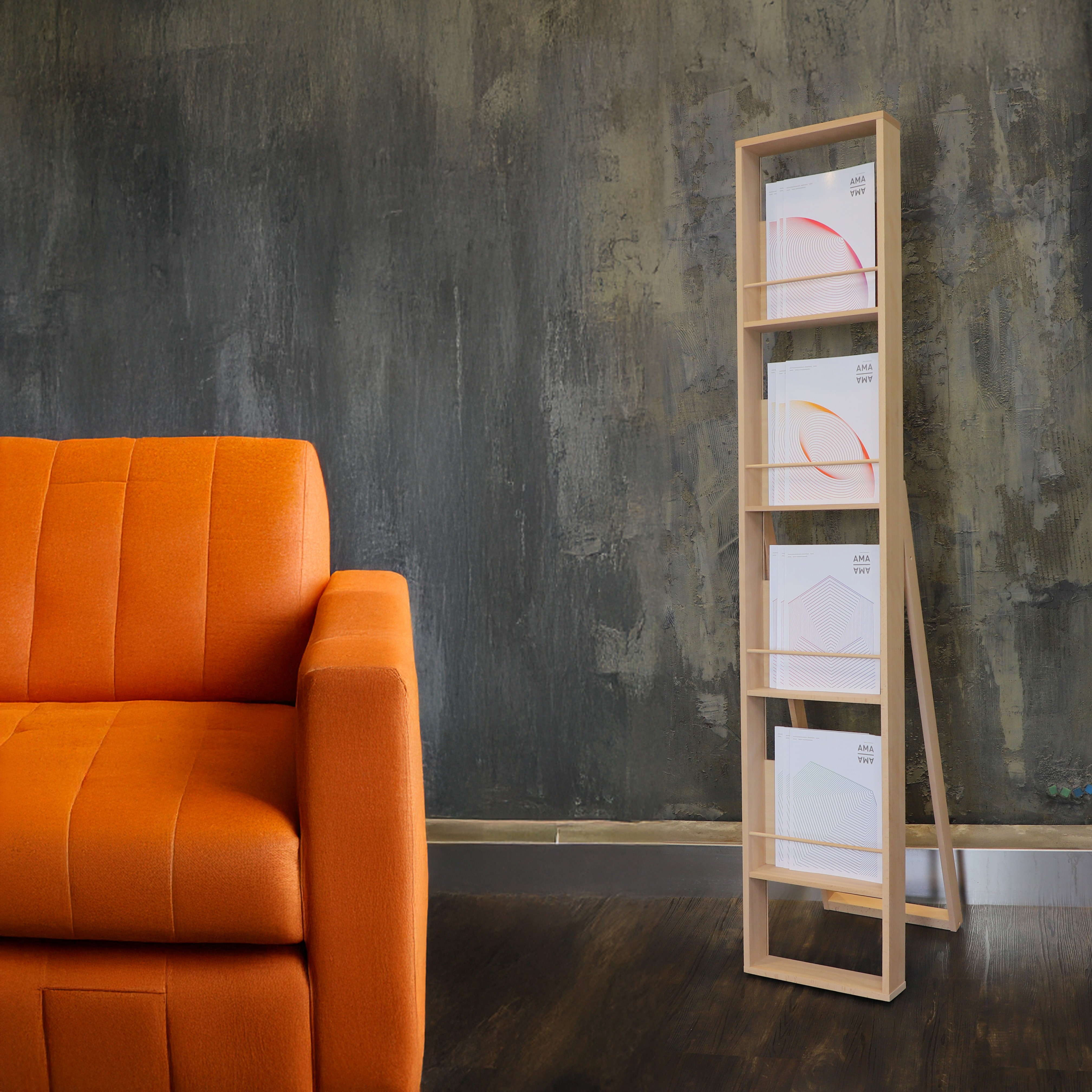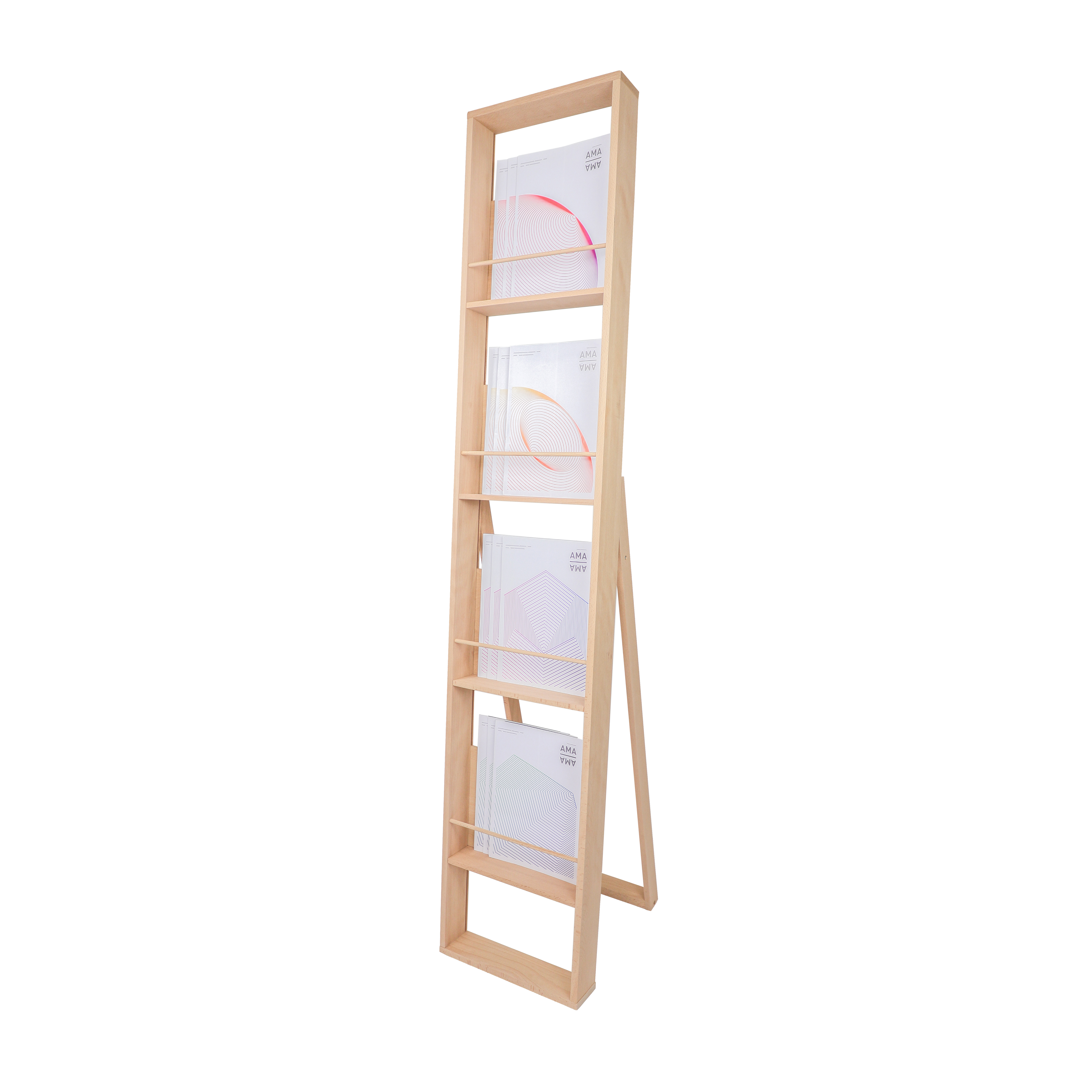 Made of European beech and regionally produced, wood mate floor is the perfect stand for ecological catalogue presentation. Four large compartments offer sufficient storage space for magazines, flyers and brochures in A4 portrait format.