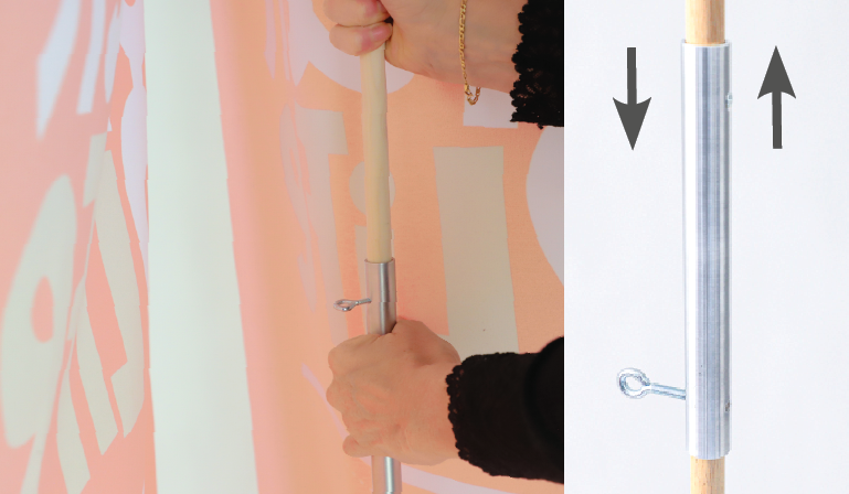 ✔ Tool-free assembly - simply place the banner on the upper holding bar and fix it in the lower strips with wooden piping.