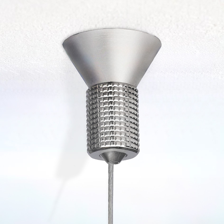 Cable support, screw-tautsystem. Universal fastener for steel cable, chain or nylon thread. Mount the fastener, fix cable with allen screw, clamp stepless taut by screwing the hull. Cable thickness: max. Ø1,8mm. Material: plated brass