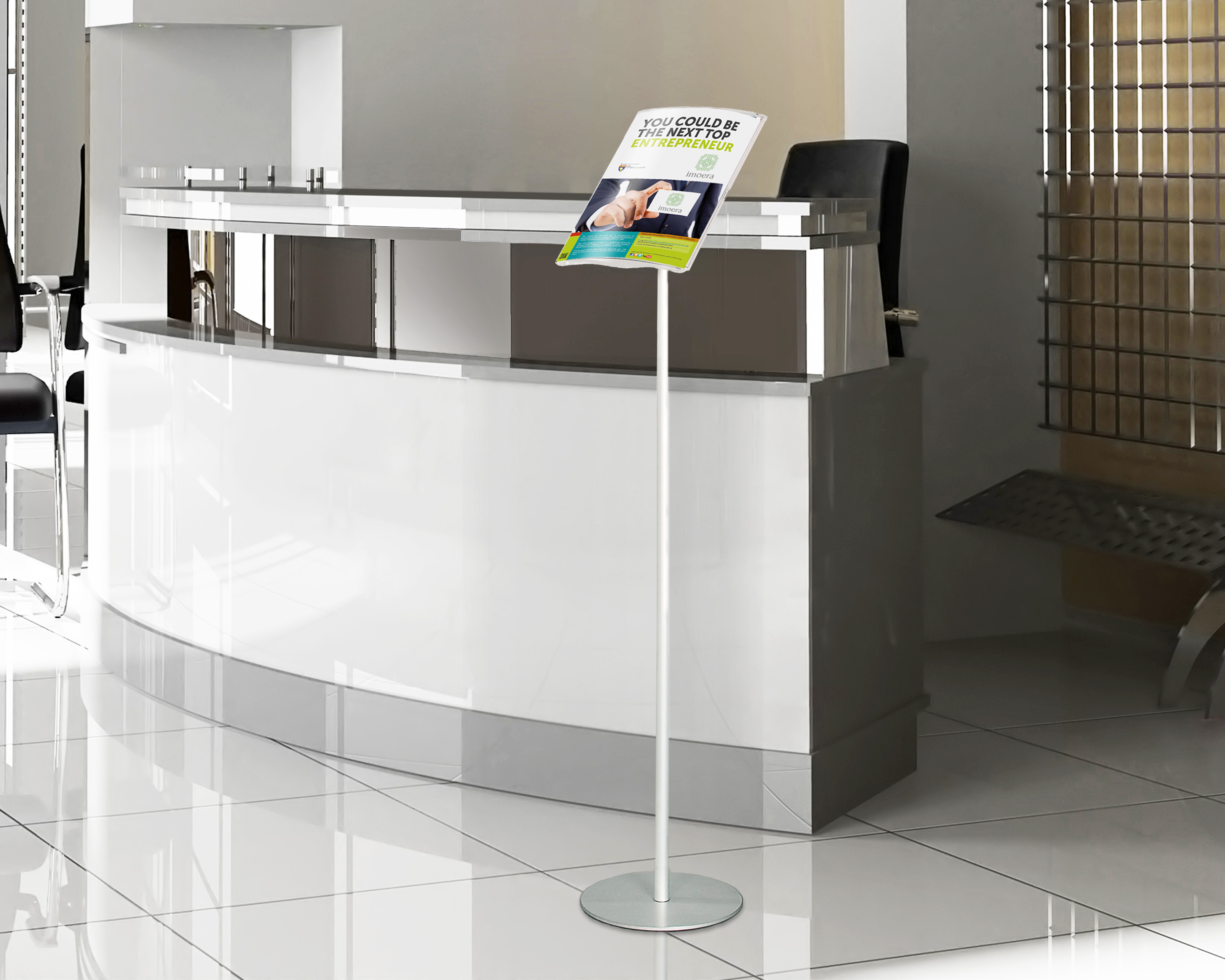 Optimal design with a round, stabild base. With poster pocket Pixquick A4 or A5. Shock resistant, dust-proof and frameless information pocket.