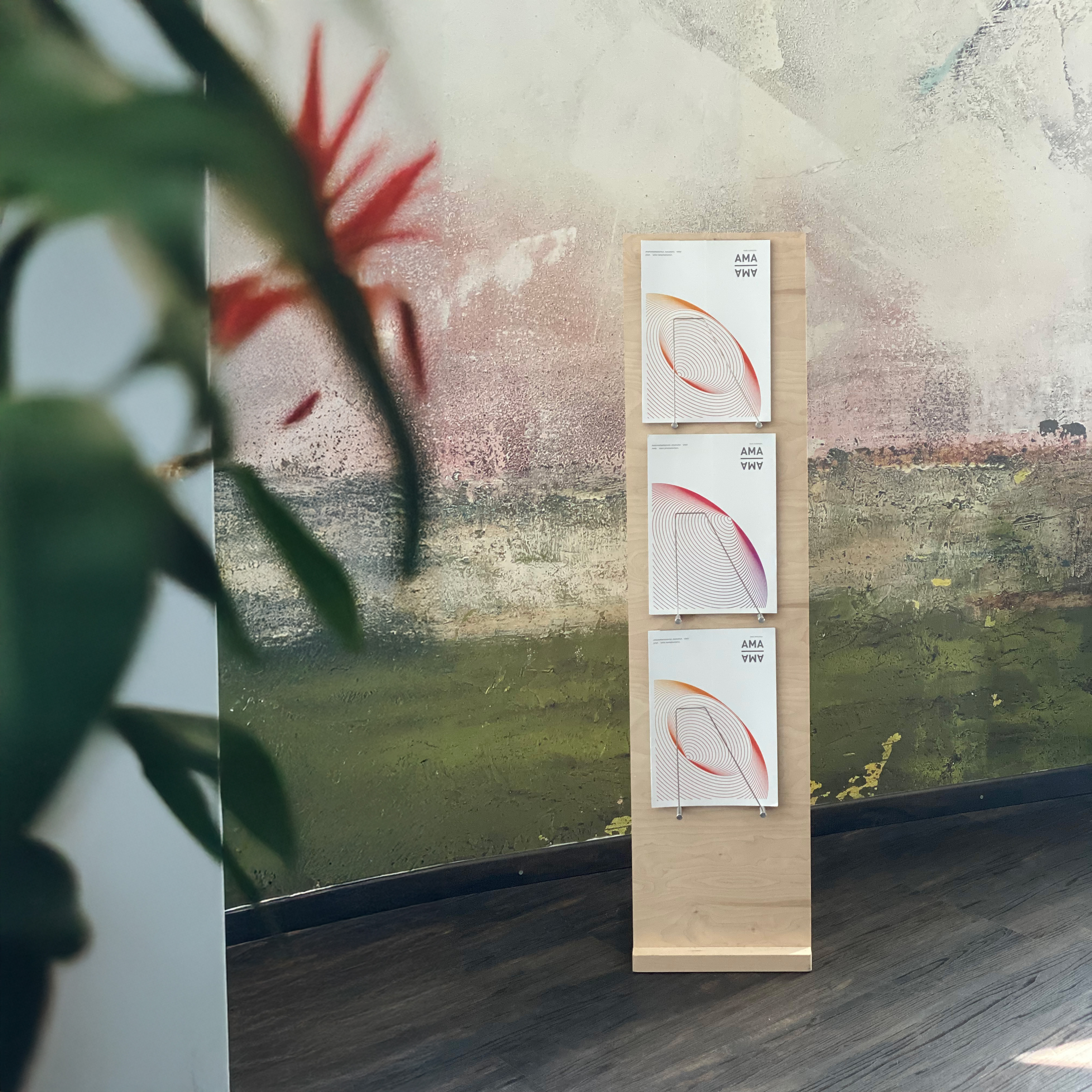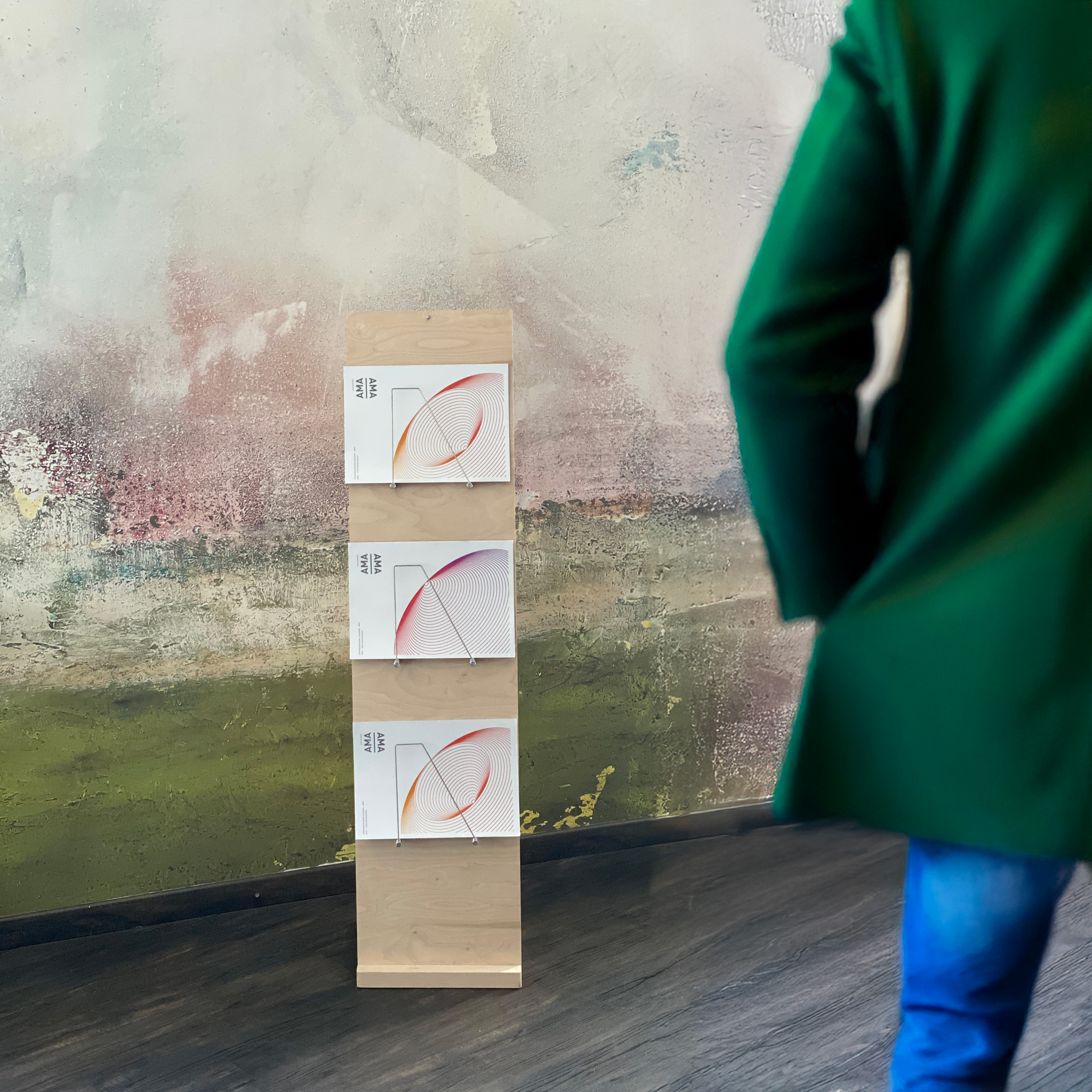 Ein Design Prospektaufsteller Made in Italy, aus nachwachsenden, recyclebaren Materialien, regional erzeugt und in wenigen Tagen geliefert.