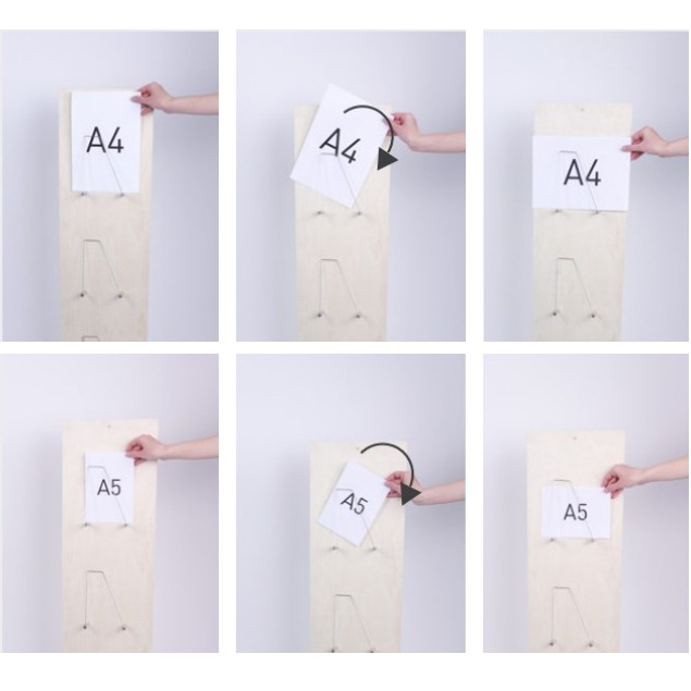 Das unbehandelte FSC-zertifizierte Holz aus Trentino-Südtirol und die Edelstahl-Halter ergeben ein ressourcenschonendes Katalog-Display für den umweltbewussten Kunden.