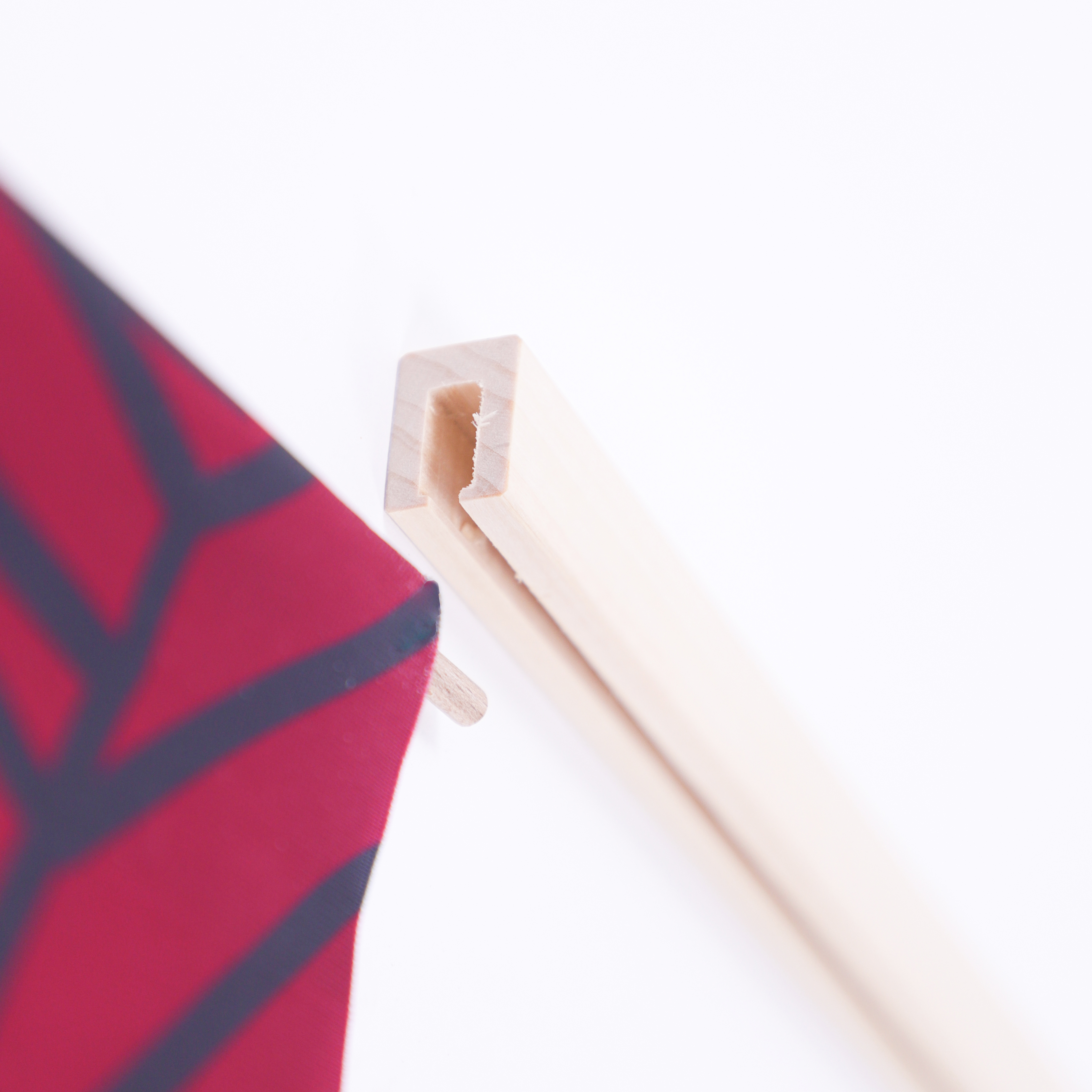 Einfach nachhaltig: Wood Rail für die Abhängung von Stoffbannern mit Saum, aus naturbelassenem Alpenholz.